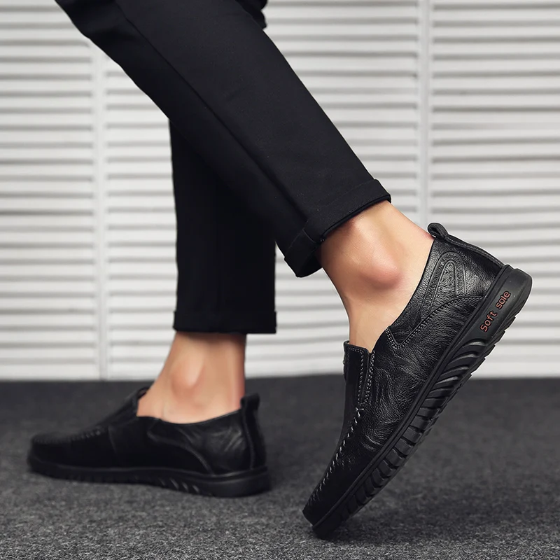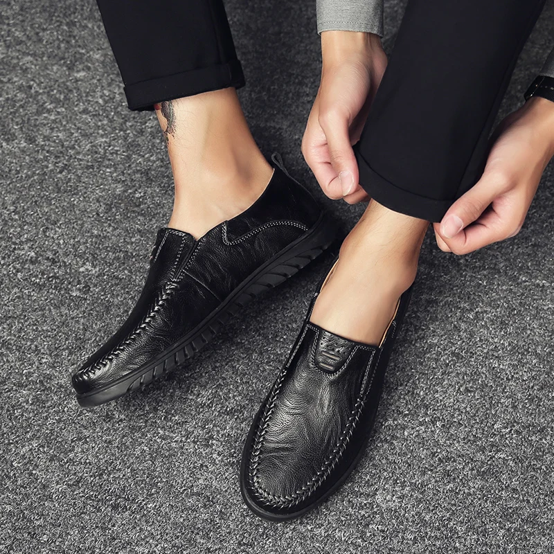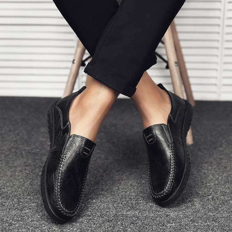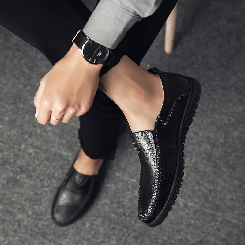 Мокасины мужские из сплит-кожи, лоферы, без застежки, повседневная ...