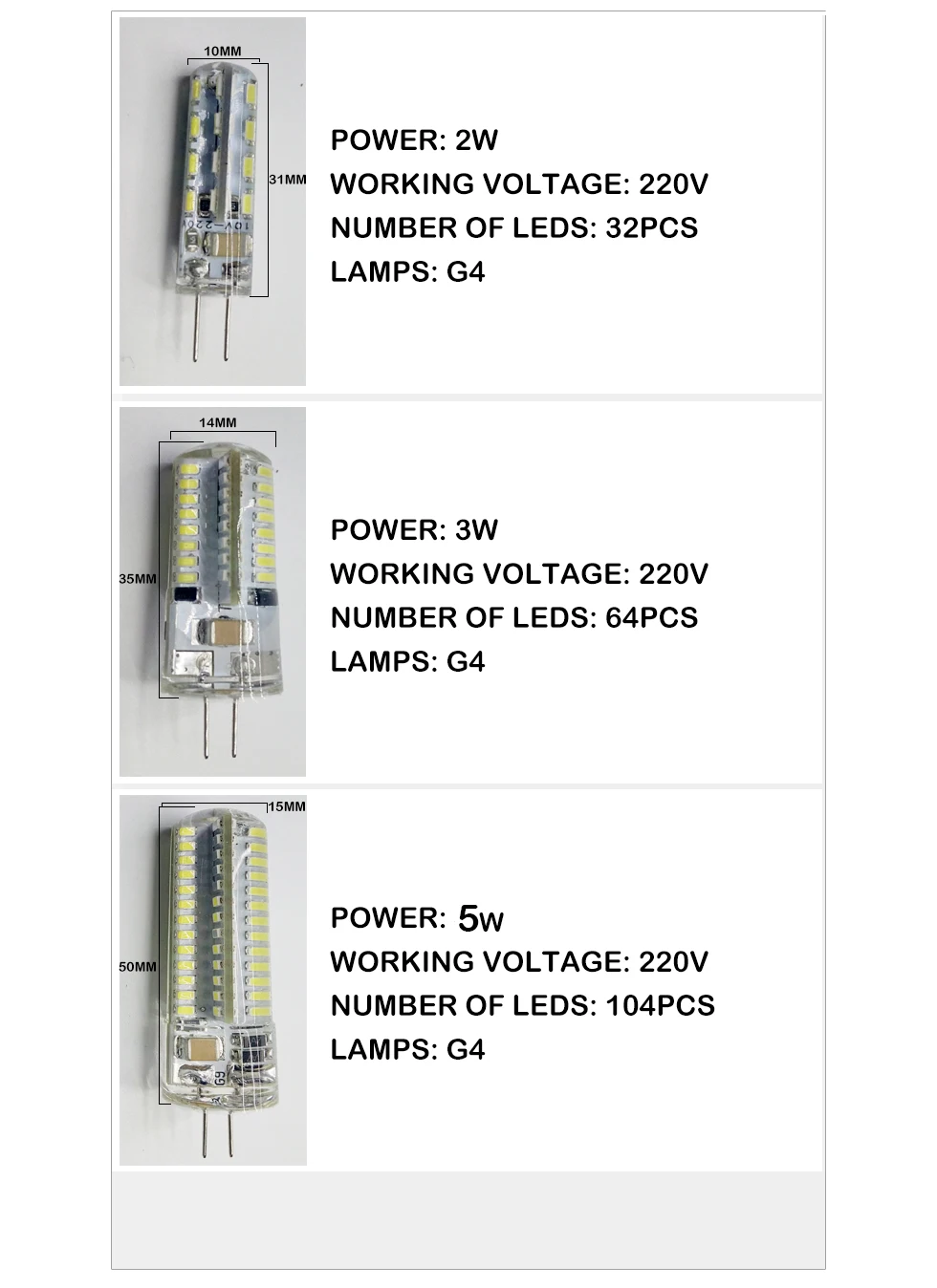 Мини-светодиодная лампа G4 3014, 3 Вт, 5 Вт, 12 В переменного тока, 220 В переменного тока, светодиодная лампа G4 SMD Licht 360, абстрактный светильник