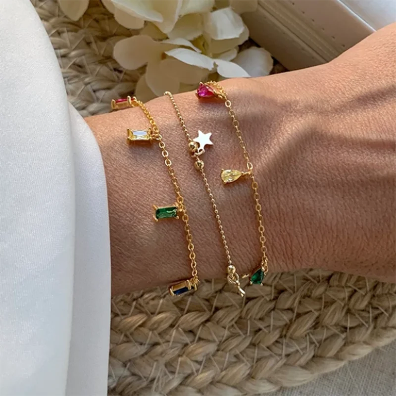 BOAKO 925 стерлингового серебра, разноцветные капли воды, циркон, браслеты с брелоками для женщин, квадратный зелеными кристаллами ручной работы; Комплект: бусы толстые браслет-цепочка