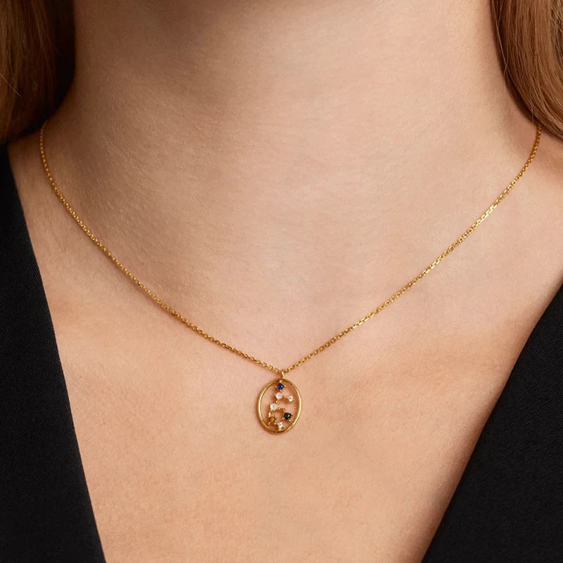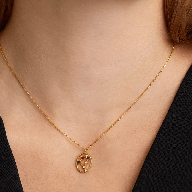 Ожерелье женское из серебра 925 пробы с овальным кулоном 12 созвездий