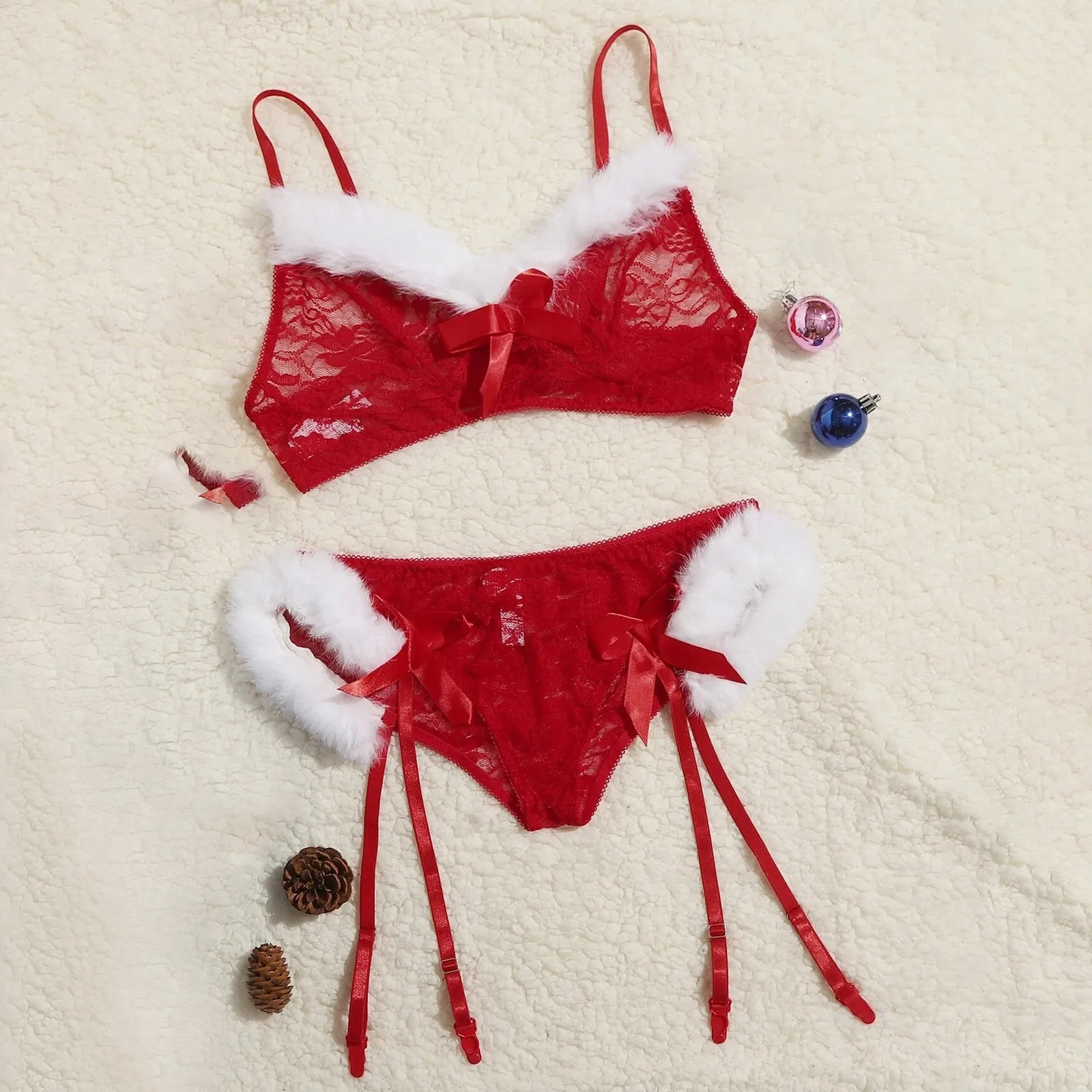 Женский кружевной комплект с бюстгальтером и бантом, пижама, нижнее белье, стринги с перьями