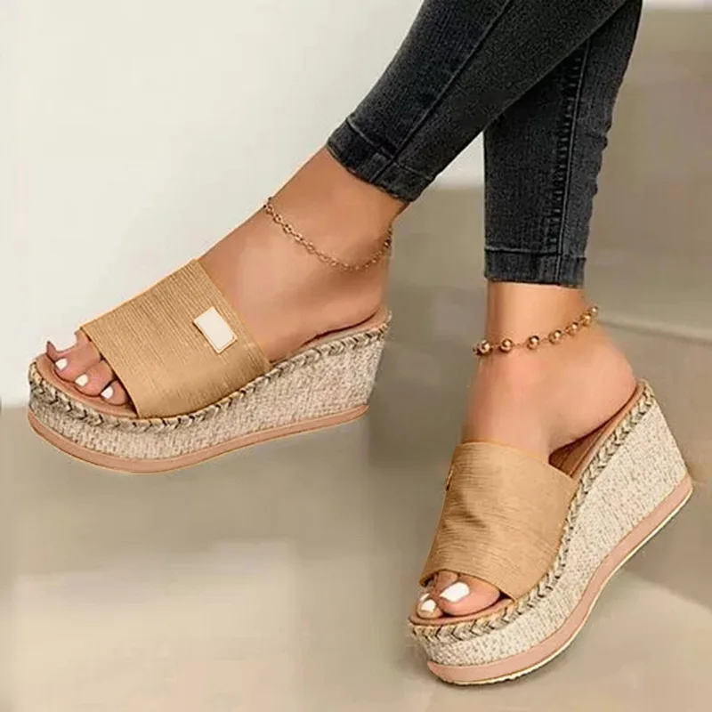 2021 Летняя обувь без застежки, на танкетке; Платформа, высокий каблук женские тапочки дамские уличные туфли для офисных леди, засорить тапочка на платформе в богемском стиле