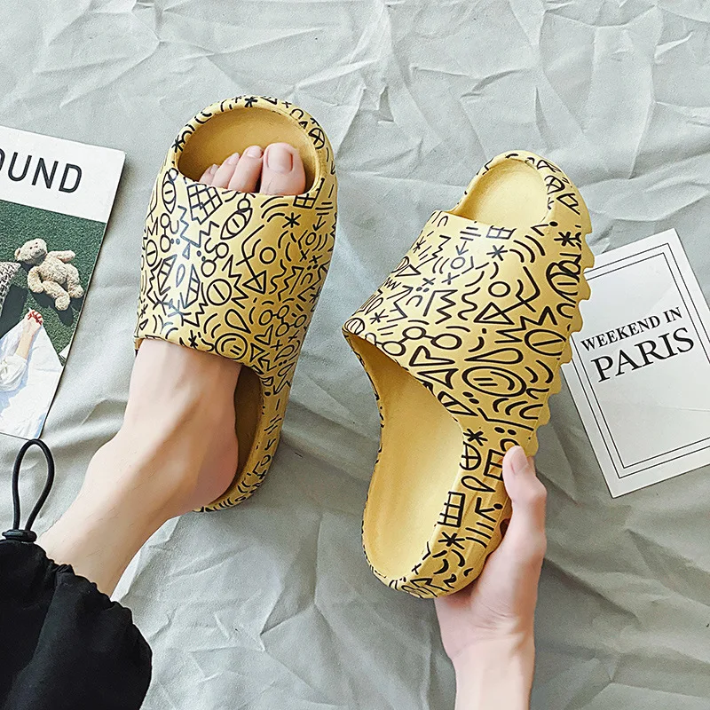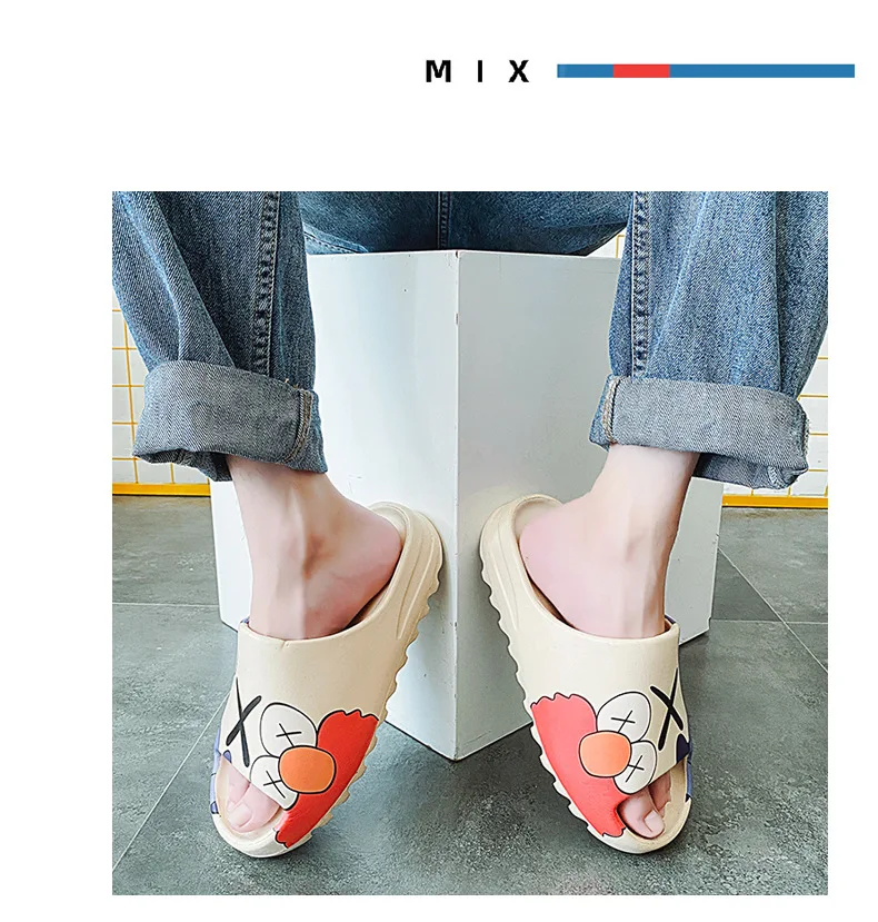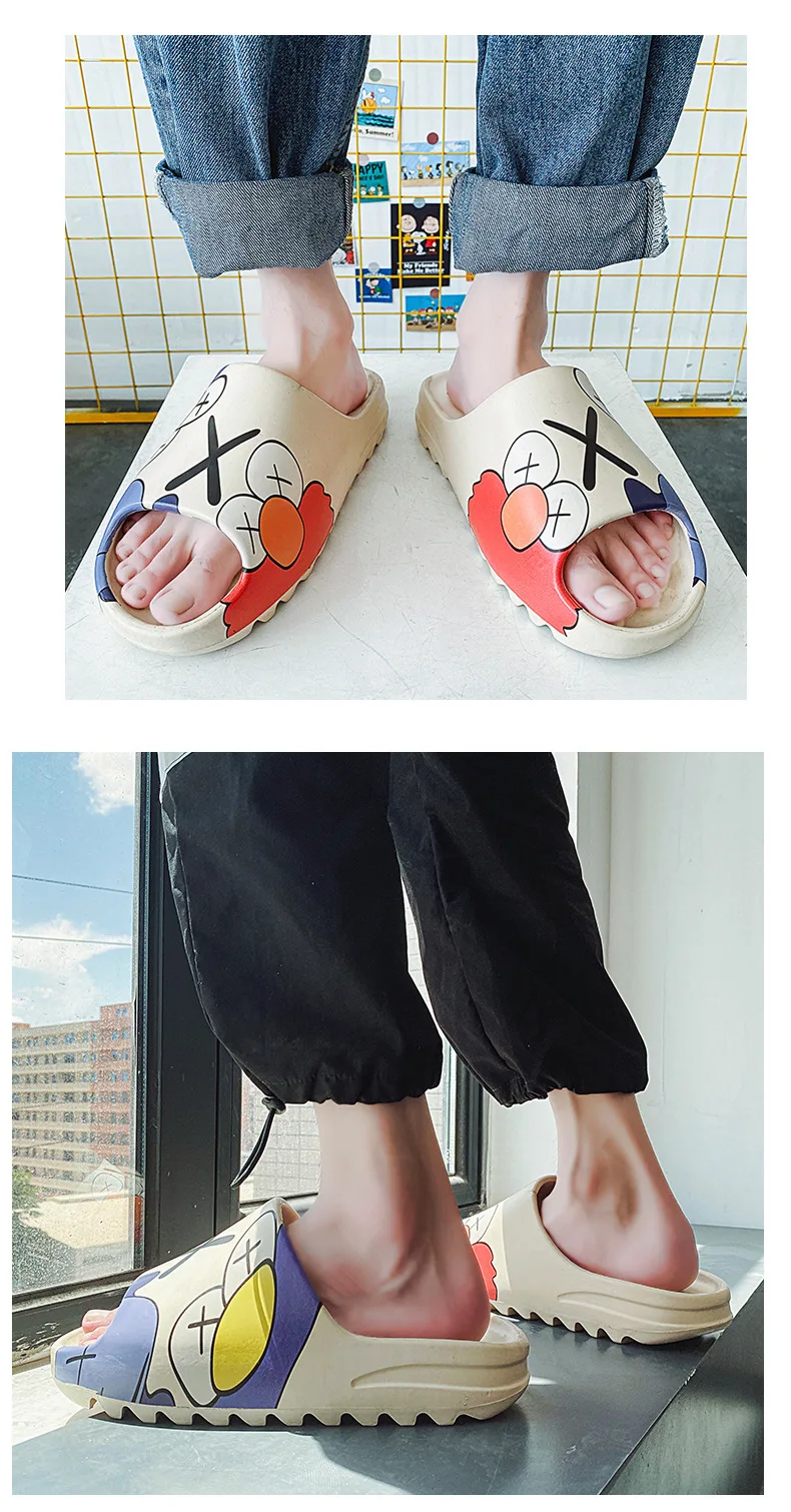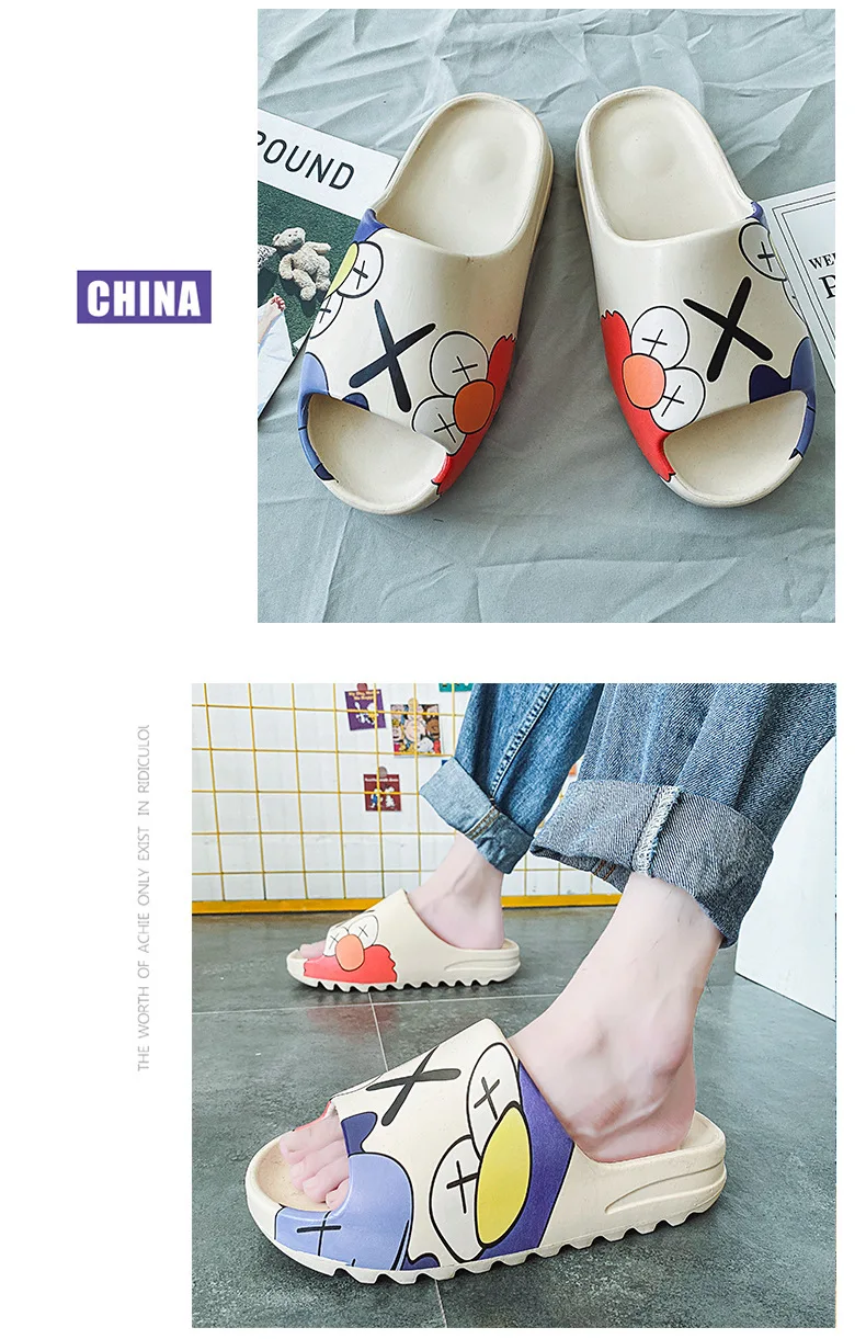 Тапки мужские и женские на толстой подошве, повседневные Нескользящие, уличные модные тапочки с граффити, большие размеры, лето 2021