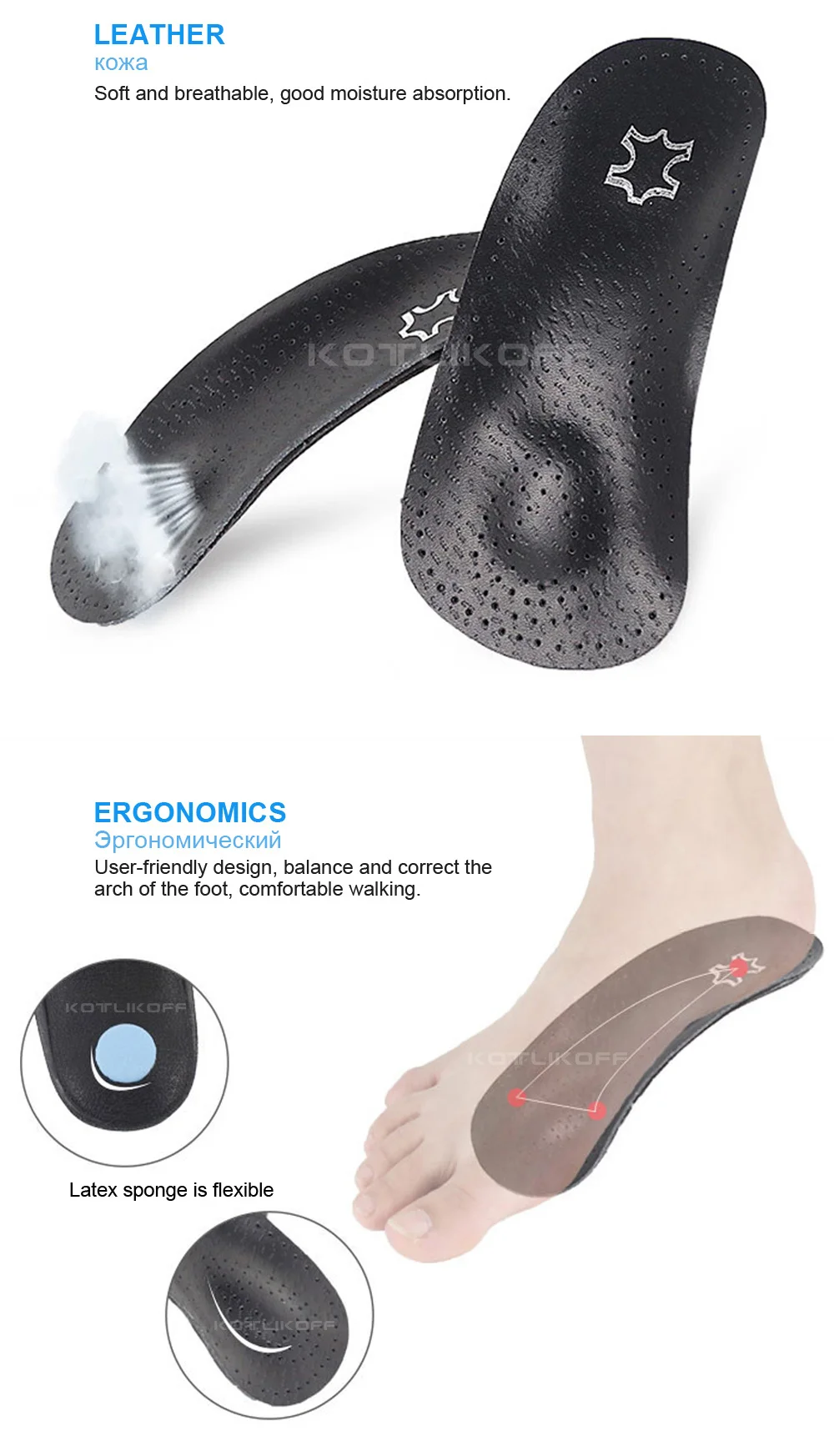 KOTLIKOFF кожаная ортопедическая стелька для плоских ног подкладки для поддержки свода стопы OX стельки для коррекции Ноги стелька для боли в пятке 1 пара