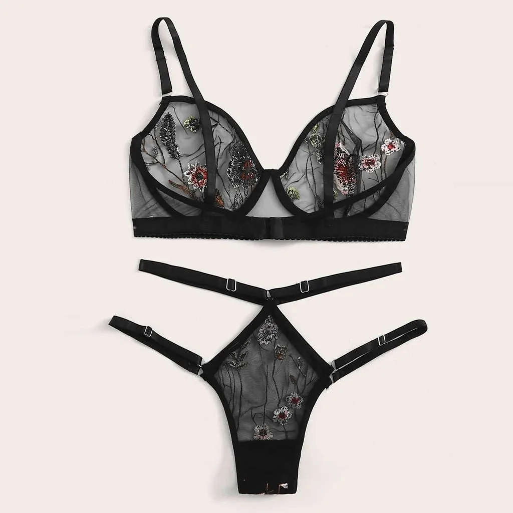 Комплекты с бюстгальтером и трусиками с цветочной вышивкой, сексуал...