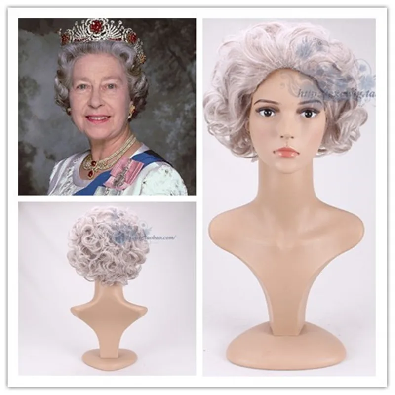 Ролевые игры, серебряные волнистые парики для бабушки эгельбет королевы, праздничные костюмы для пожилых женщин