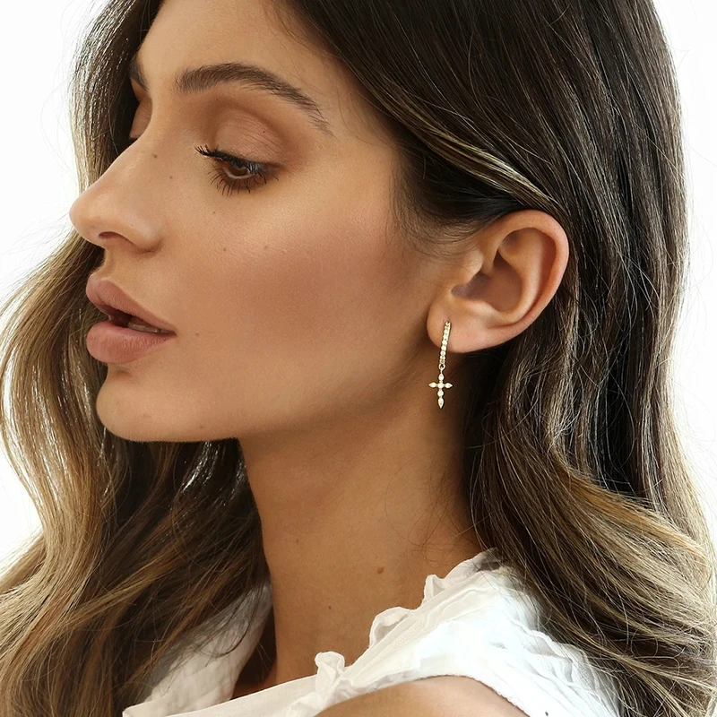 Женские Серьги-гвоздики BOAKO Pendientes Plata 925, золотые/серебряные Серьги-кольца с крестом, Украшения Для Пирсинга Ушей, милый подарок, Серьги # Yj