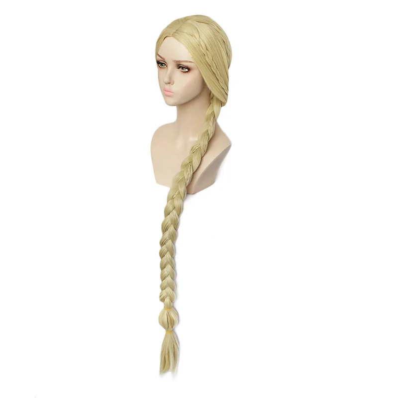 120 см48 дюймов на Хеллоуин для женщин принцесса Рапунцель косплей парики блондинка, огромные косички из волос, ролевая игра золотые плетеные волосы и цветы