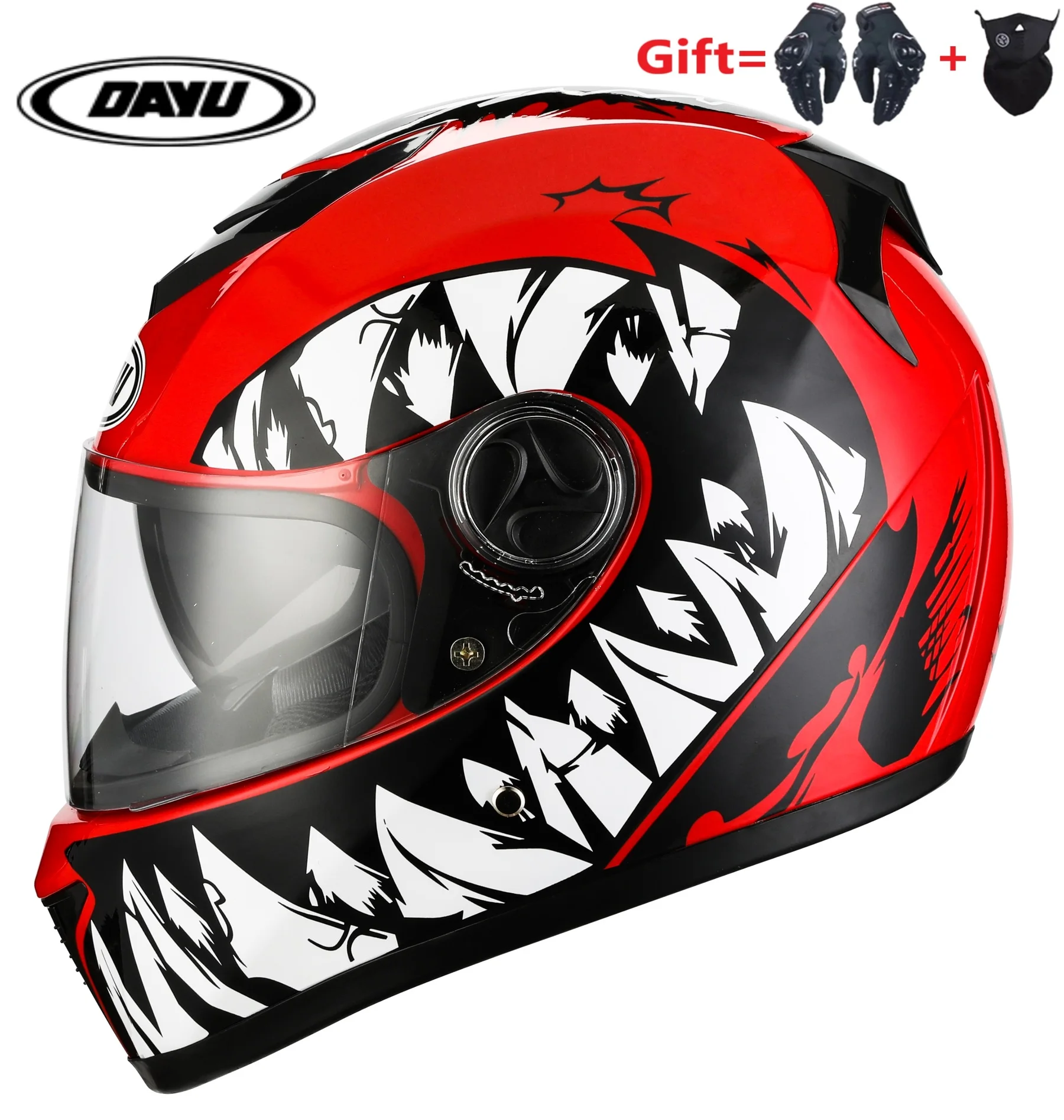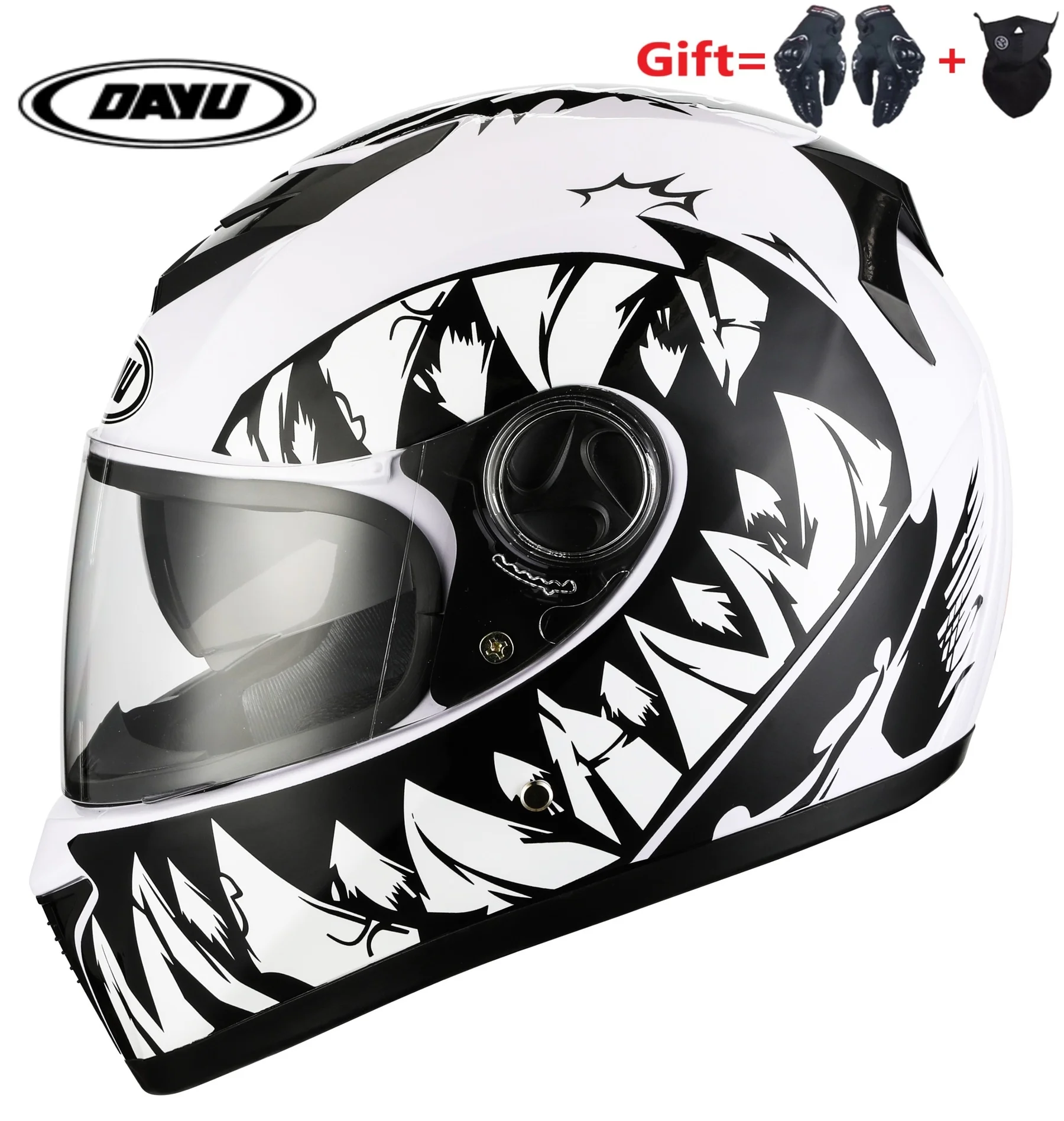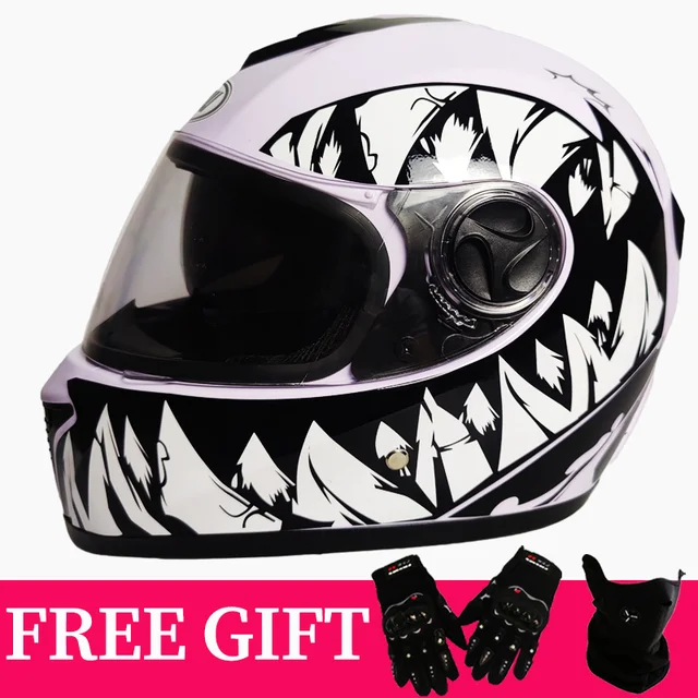 Мотоциклетный шлем, шлем с двойными стеклами, на все лицо, 2 подарка