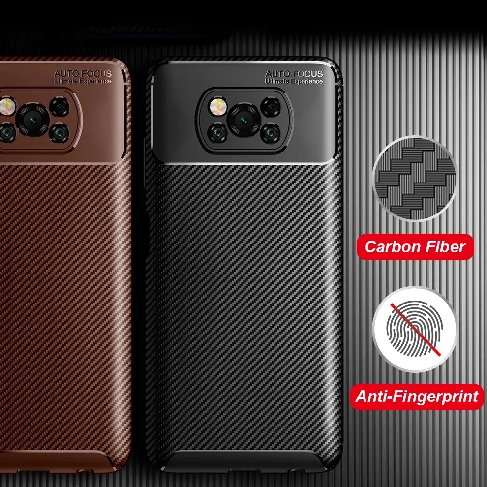 Чехол POCO X 3, мягкий чехол из углеродного волокна, противоударный...