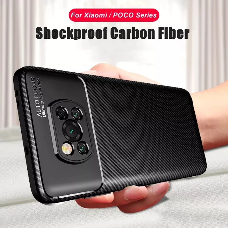 Чехол из углеродного волокна противоударный силиконовый чехол для XiaoMI POCO X3 NFC POCOPHONE X3 F2 Pro F3 M2 F1 M3 Funda Coque Case