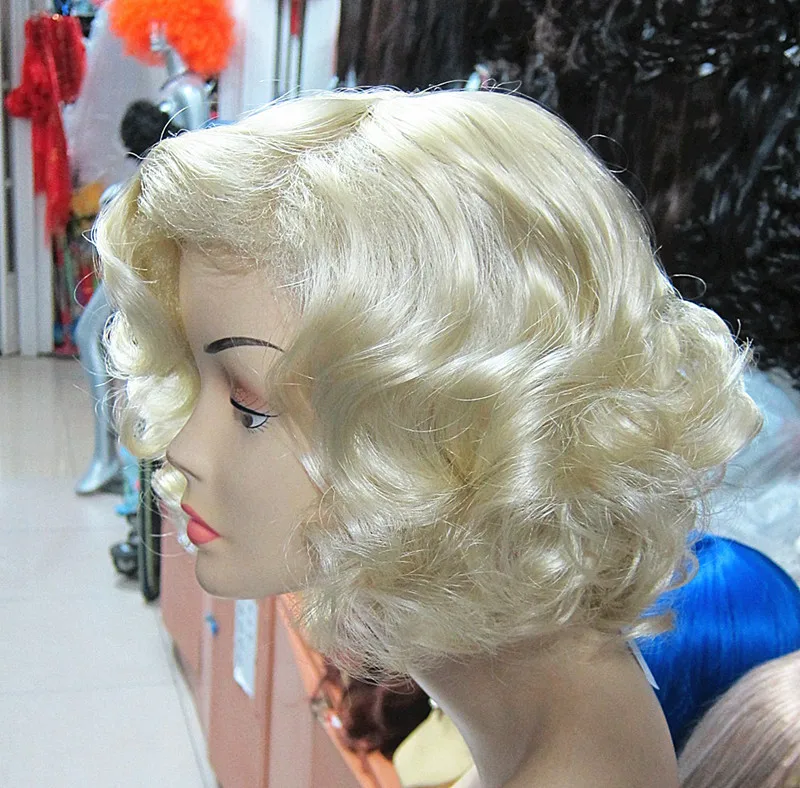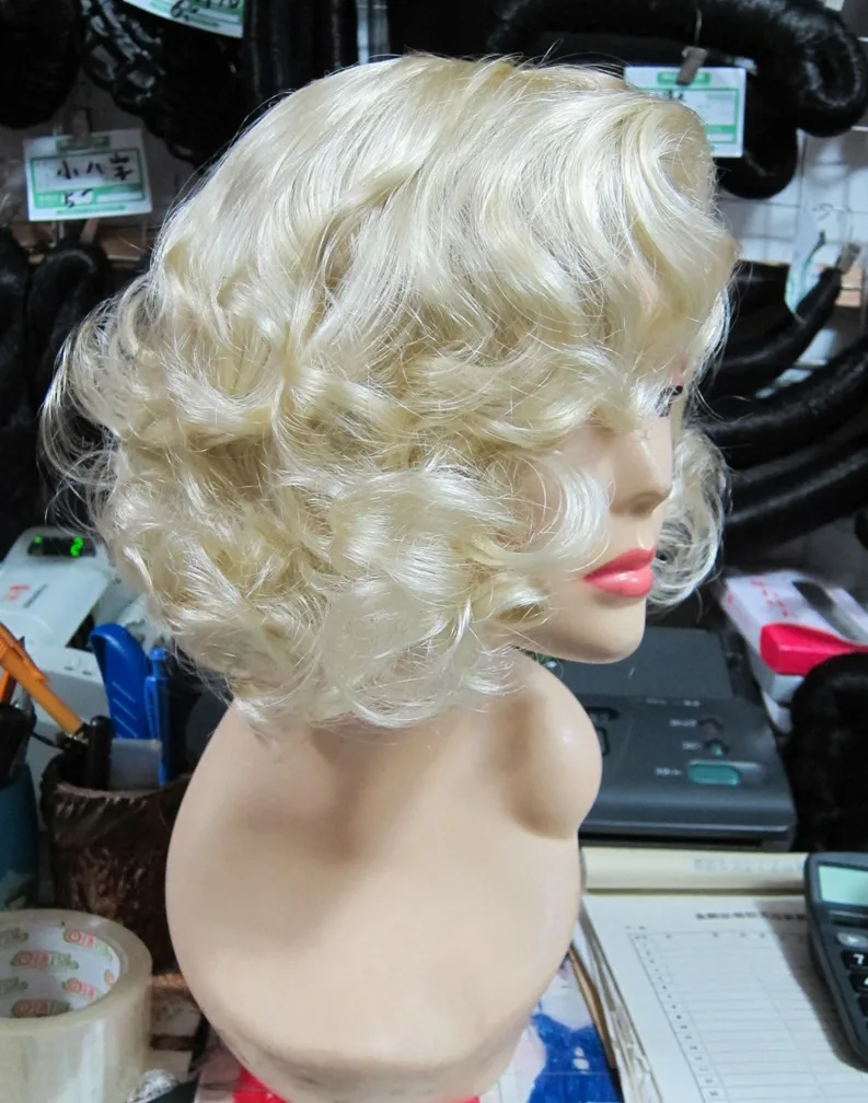 Парик для косплея Мэрилин Монро модные короткие светлые волосы вьющ...