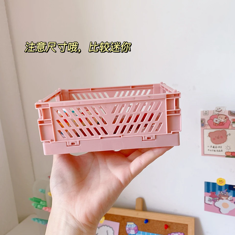 Мини складной ящик, пластиковый складной ящик для хранения, корзина, канцелярские принадлежности, школьные принадлежности, косметический контейнер, настольная подставка для дома