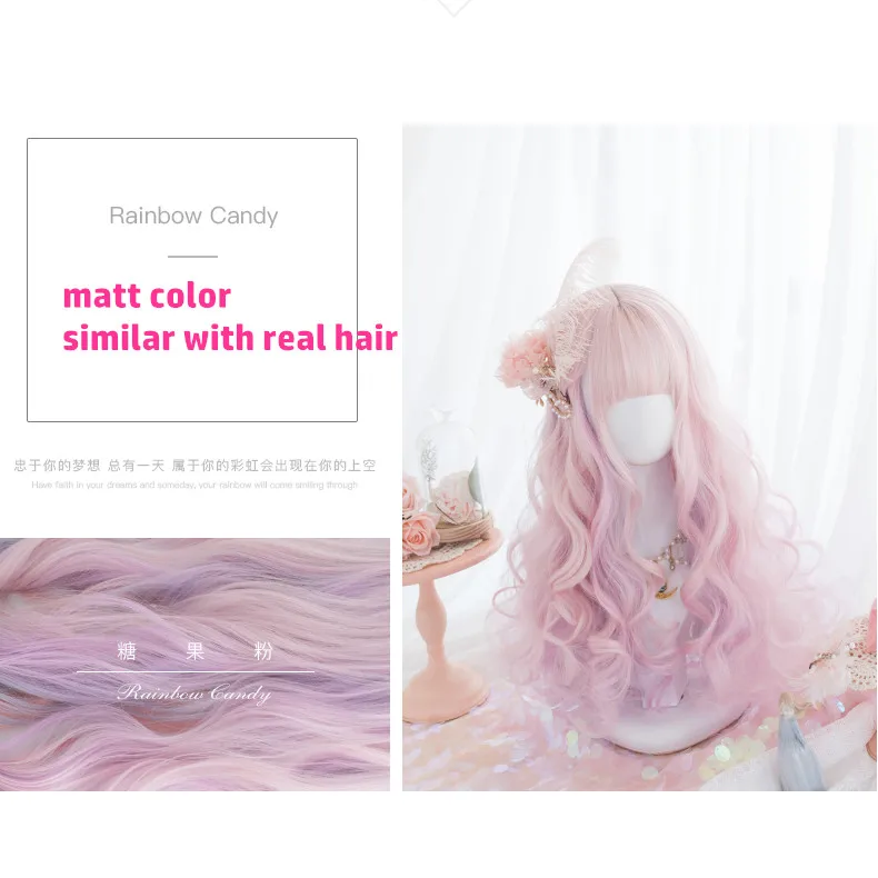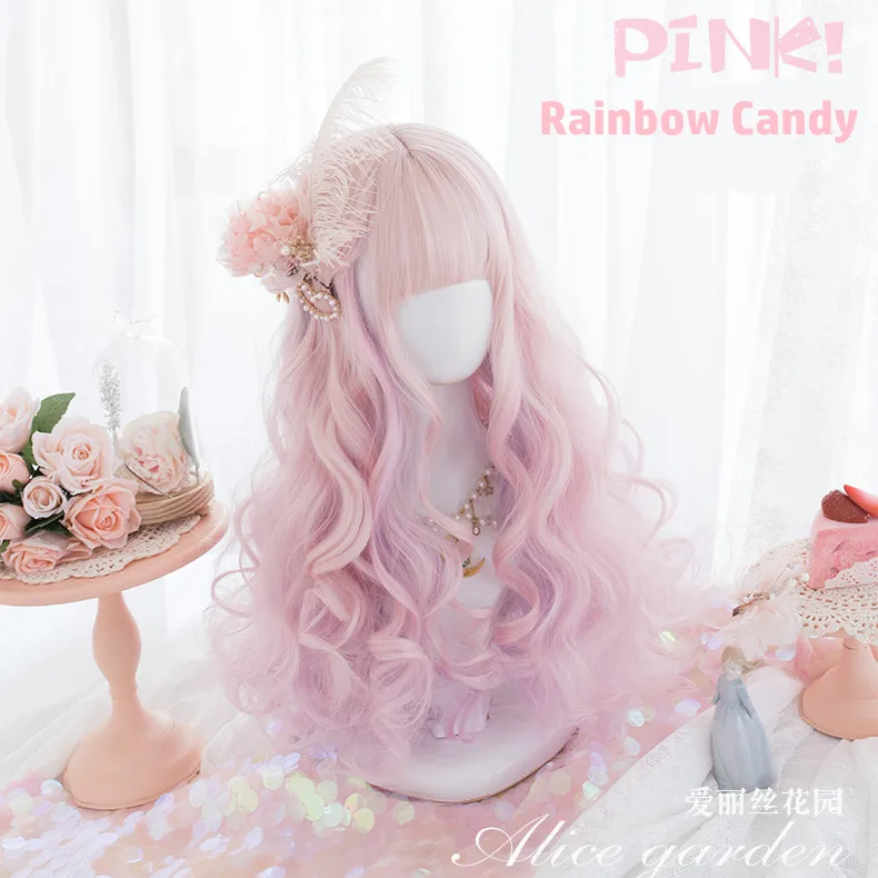 Женский комикс Алиса садовый розовый леденцы Лолита комикс кавайные радужные розовые длинные волнистые волосы с прямыми париками