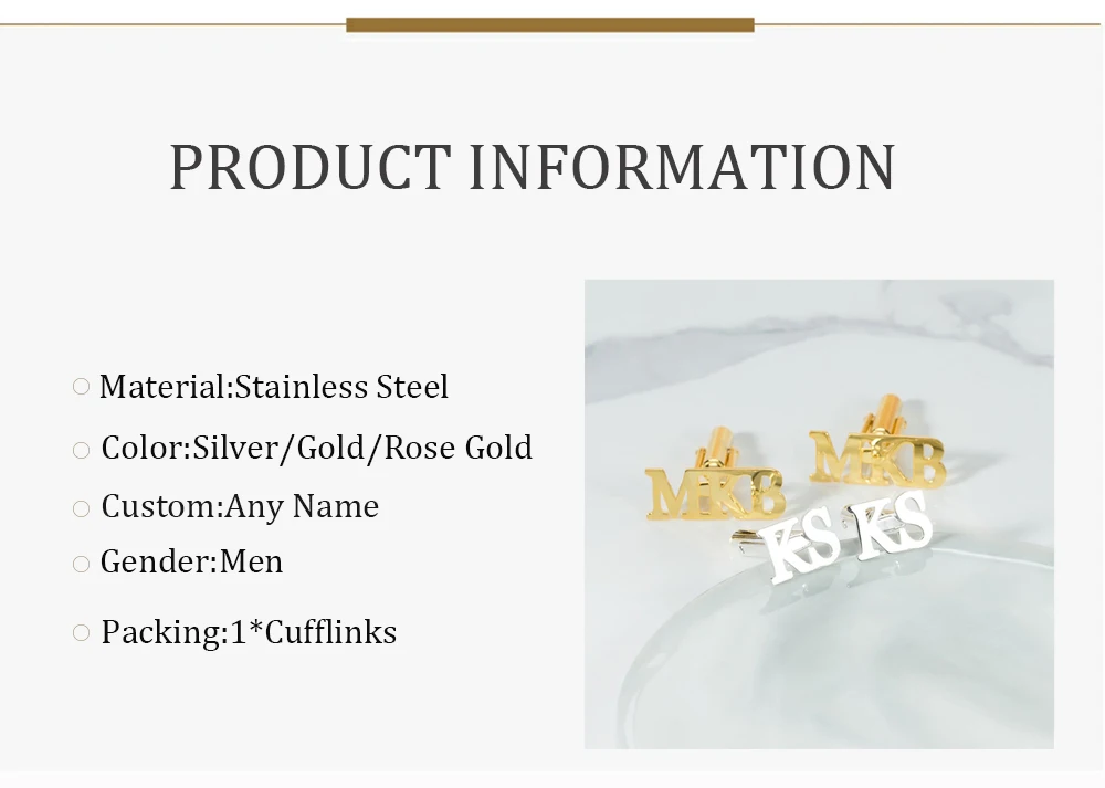 1. Пожалуйста, пришлите нам имя и шрифт, которые вы хотите заказать.2. Если вы не дадите нам имя и шрифт по индивидуальному заказу, мы свяжемся с вами. Если вы все еще не отвечаете через три дня, мы сделаем запонки в соответствии с именем вашего получателя и отправим его.3. Вы не можете отменить ваш заказ в течение 12 часов, потому что мы уже начали производство и надеемся получить ваше понимание4. У нас есть собственная Производственная фабрика, если вам нужна оптовая или Прямая поставка, пожалуйста, свяжитесь с нами.
