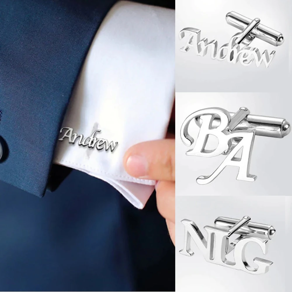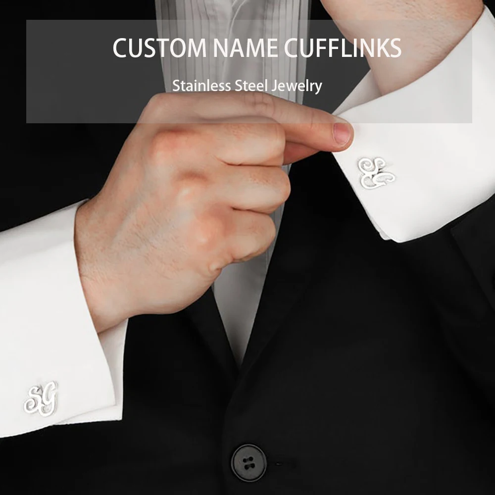 Запонки Mini-World с именем на заказ, запонки из нержавеющей стали с буквенным логотипом, мужские аксессуары из нержавеющей стали, подарок жениху