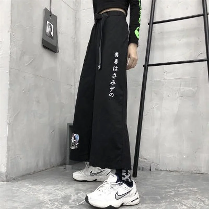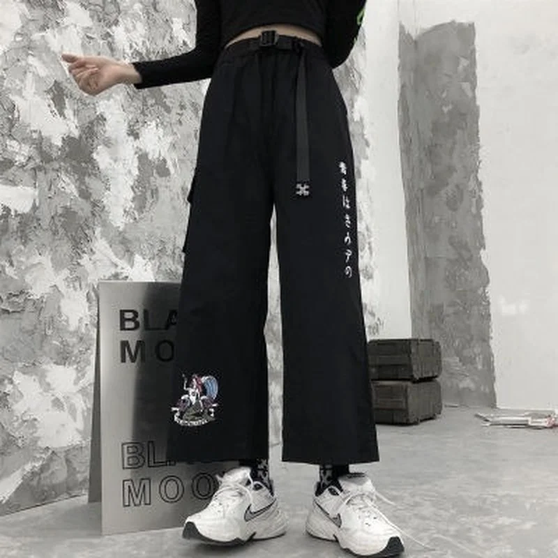 Женские брюки с высокой талией, широкие брюки с аниме принтом, модные корейские повседневные свободные укороченные брюки большого размера в стиле Харадзюку