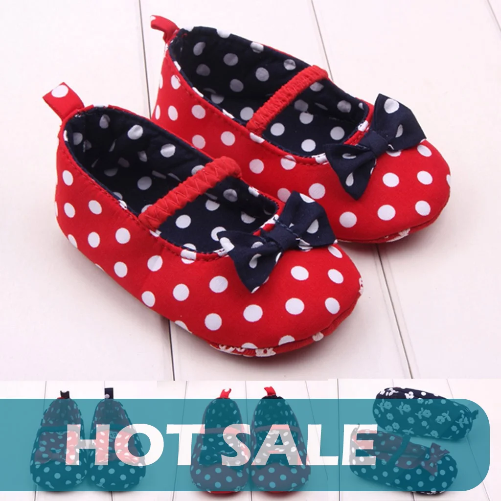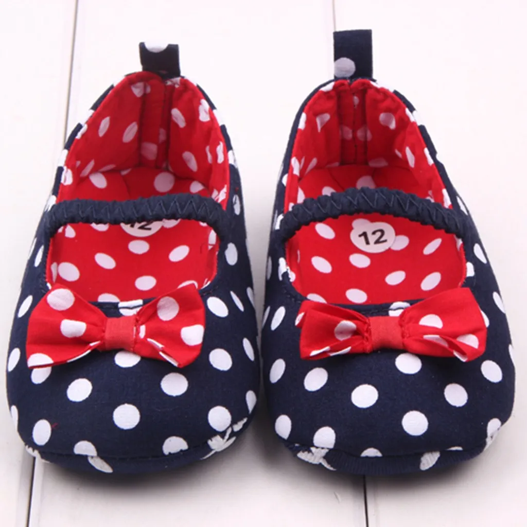 Обувь для новорожденных девочек с бантом в горошек; Нескользящая обувь для первых шагов; Обувь на мягкой подошве