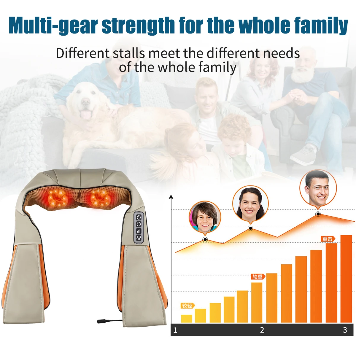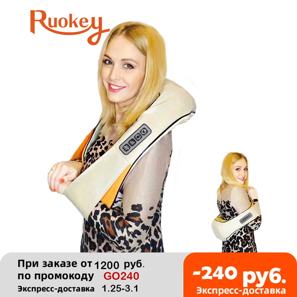 Электрический шиацу массажер для спины, шеи и плеч с инфракрасным подогревом