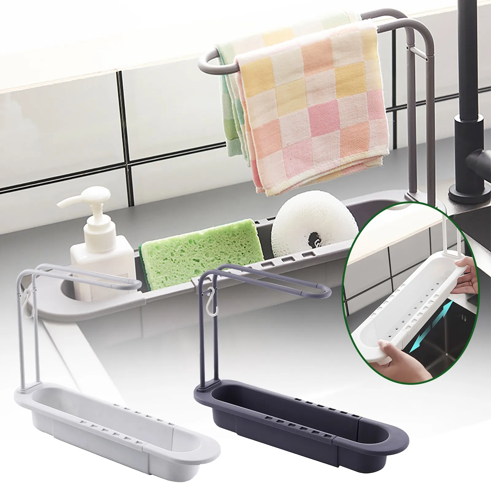 Телескопическая полка для раковины, органайзер для раковины, держатель губки для мыла, сливная стойка, корзина для хранения, смеситель, регулируемые кухонные приспособления, аксессуары