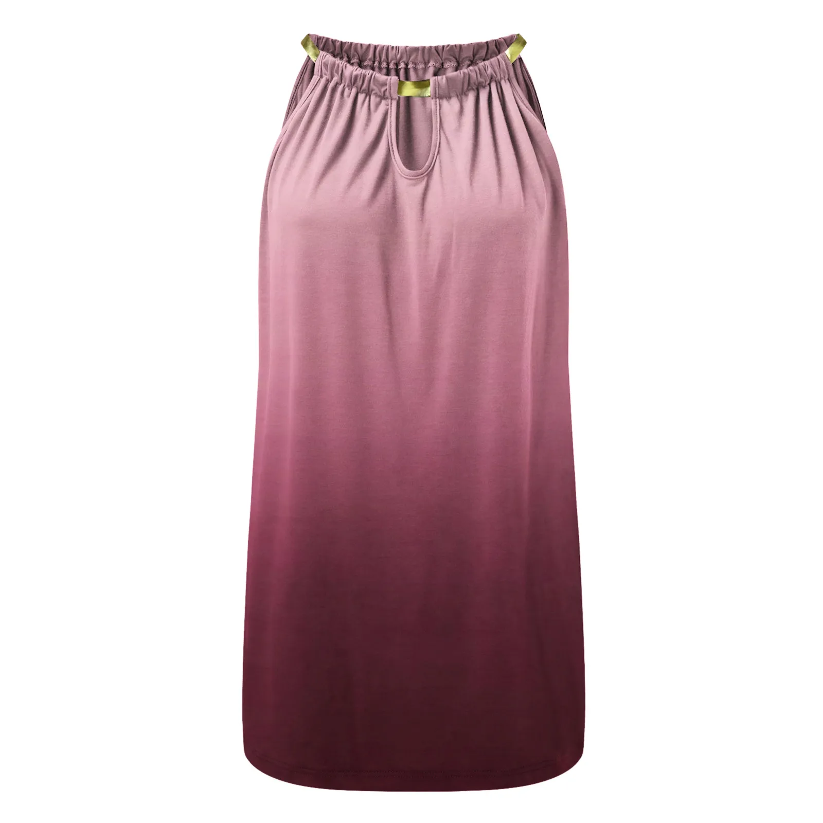 Женское модное платье без рукавов с круглым вырезом и градиентным принтом