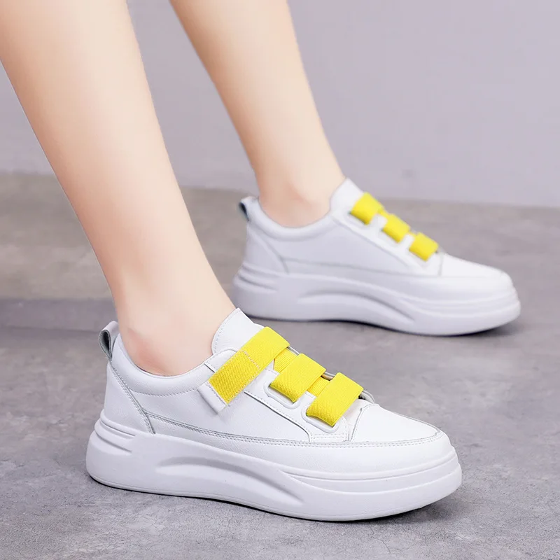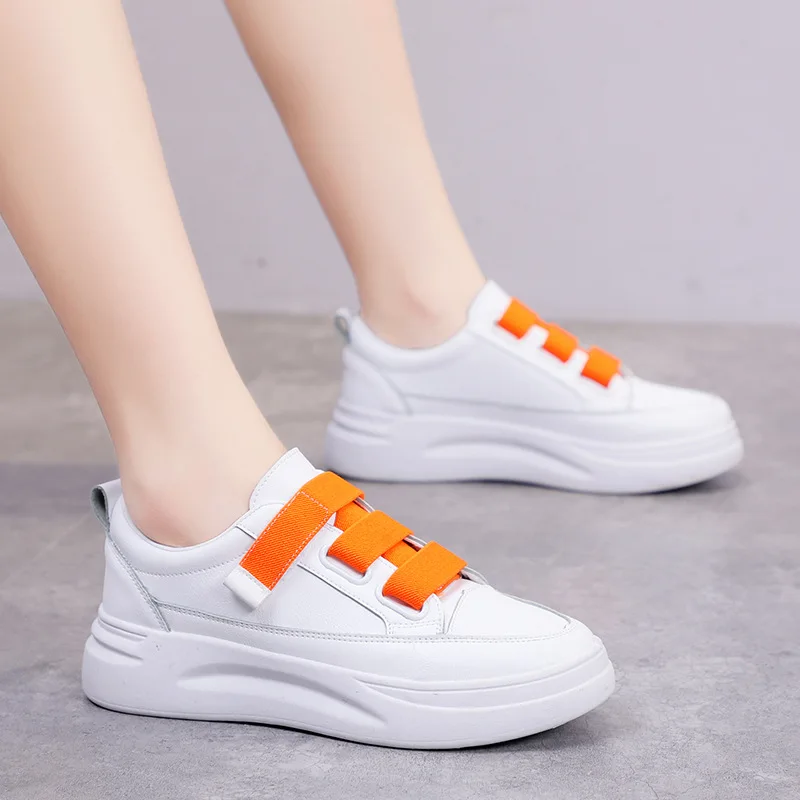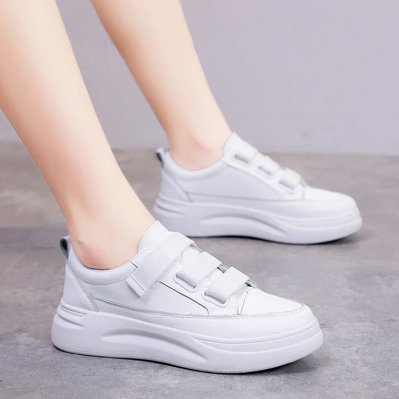 Кроссовки из ПУ кожи женские, повседневные однотонные сникерсы на толстой подошве, теннисные туфли, белые, Размеры 35-40, весна