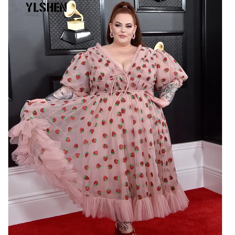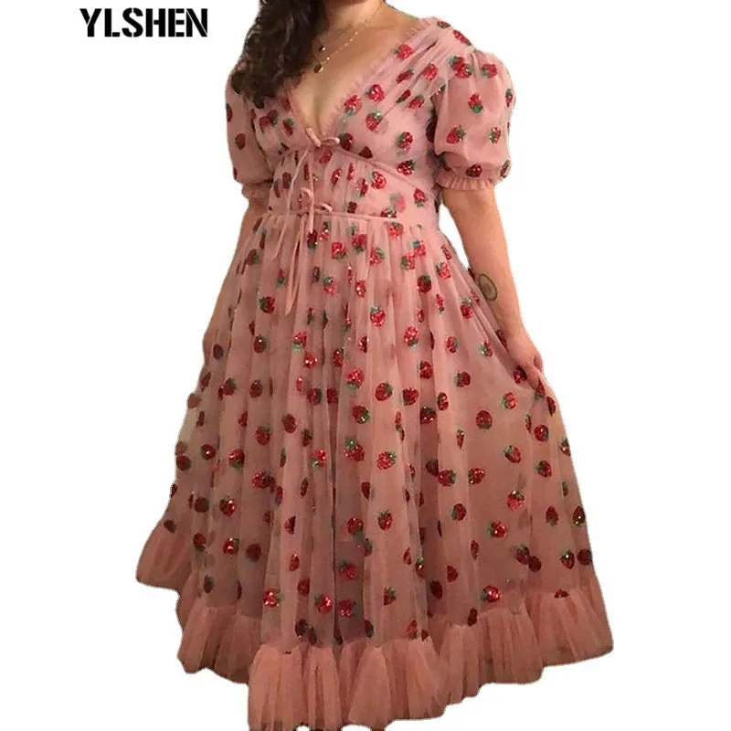 Женское платье с V-образным вырезом, розовое элегантное Сетчатое пл...