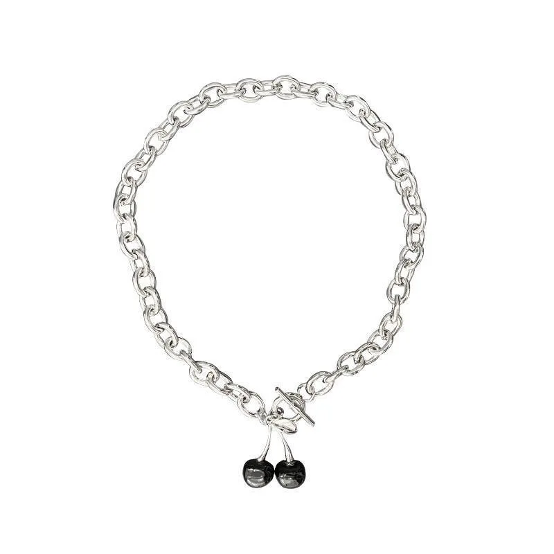 Цепочка с подвеской в виде черной вишни, металлическая, серебристая