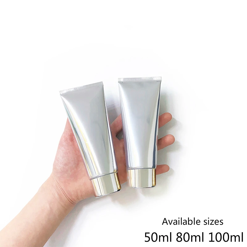 50 мл, 80 мл 100 мл алюминиевая пластиковая косметическая бутылка пустая Серебряная сжатия трубка для макияжа контейнер для крема, лосьона 20 штук, бесплатная доставка