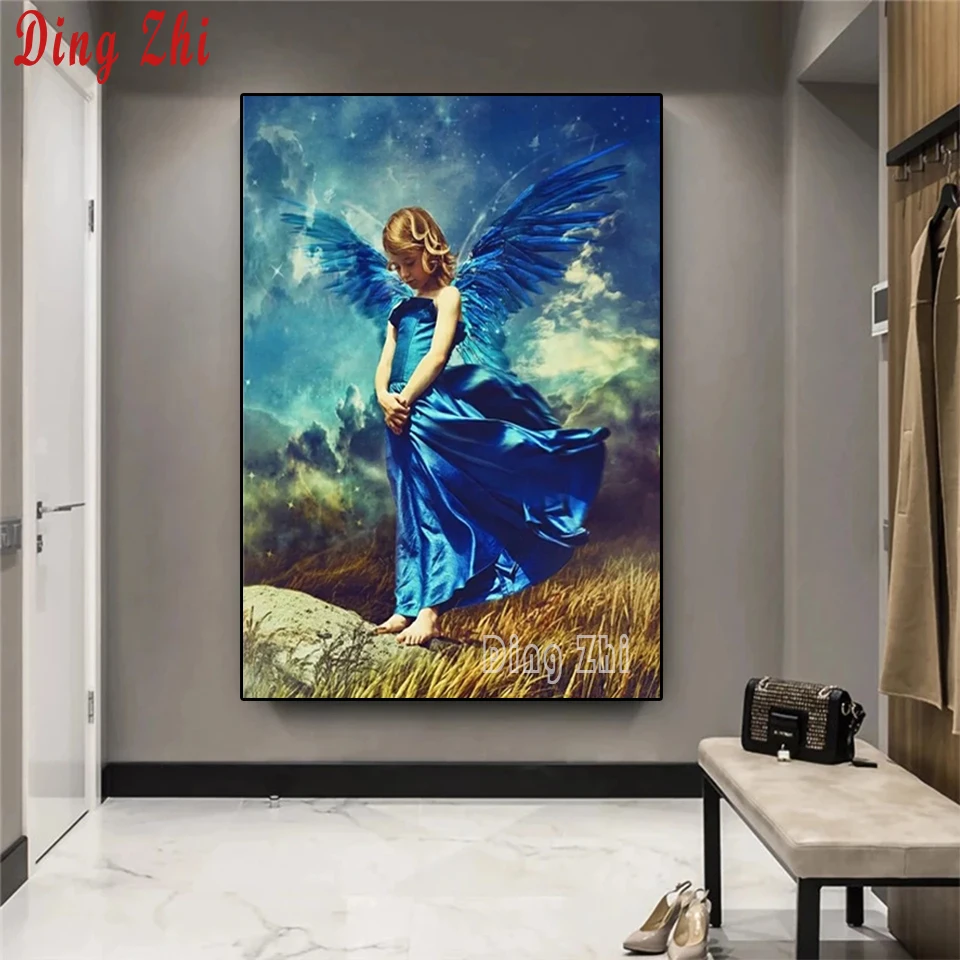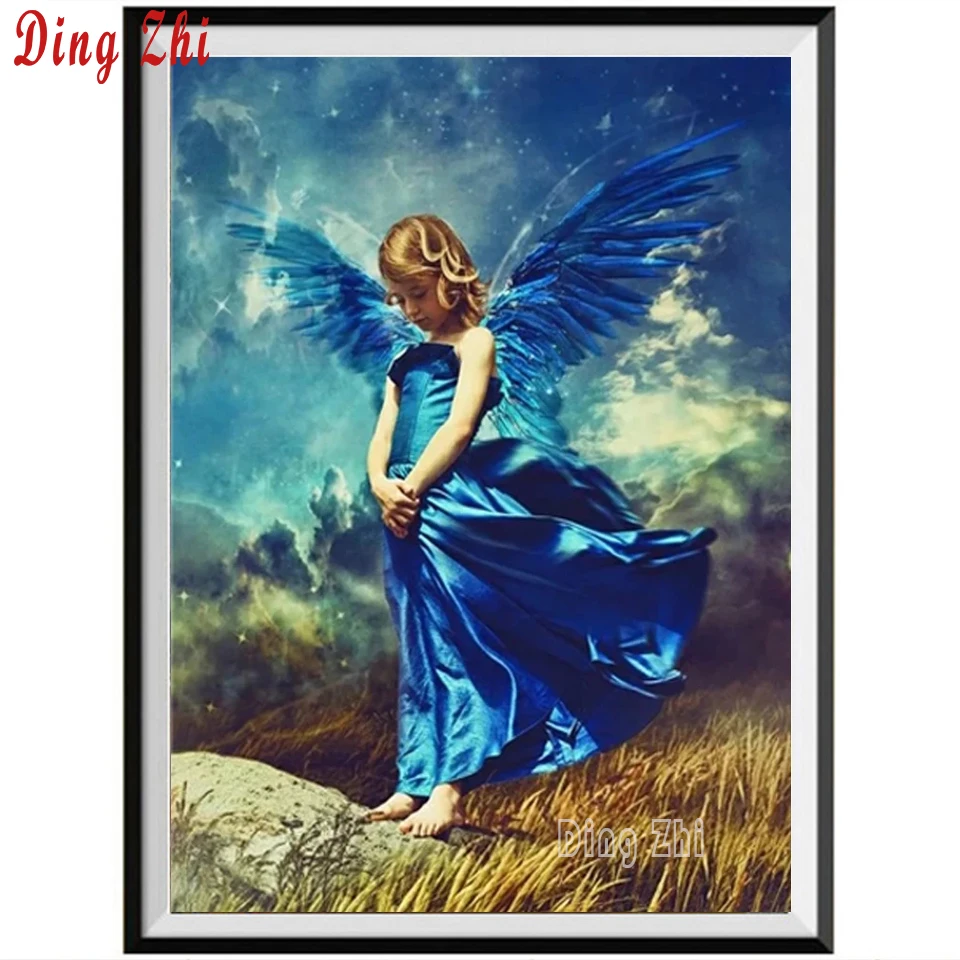 Голубые крылья Ангел полный набор Diy алмазная живопись 5D алмазная вышивка с квадратными круглыми камнями мозаика мультфильм девушка домашний декор
