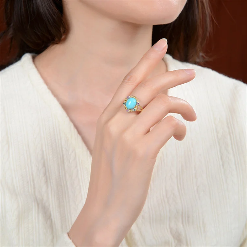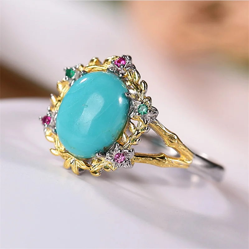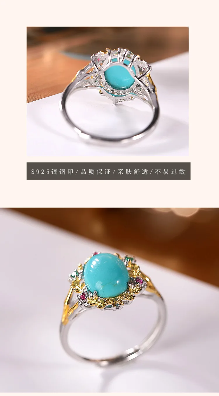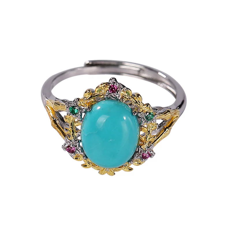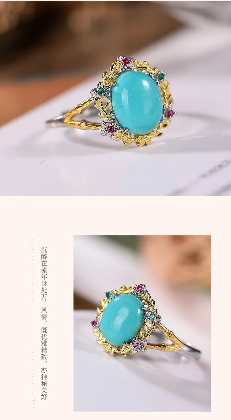 Uglyless высокой фарфоровой натуральный кольца с бирюзой Для женщин Красочные Циркон цветы кольца 925 Серебро Драгоценные камни ювелирные изделия экзотические