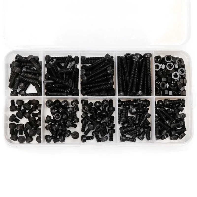 280 шт.кор. M2 M2.5 M3 комплекты винтов с шестигранной головкой с цилиндрической головкой винт DIN912 черный стальной шестигранный болт цилиндра наборы