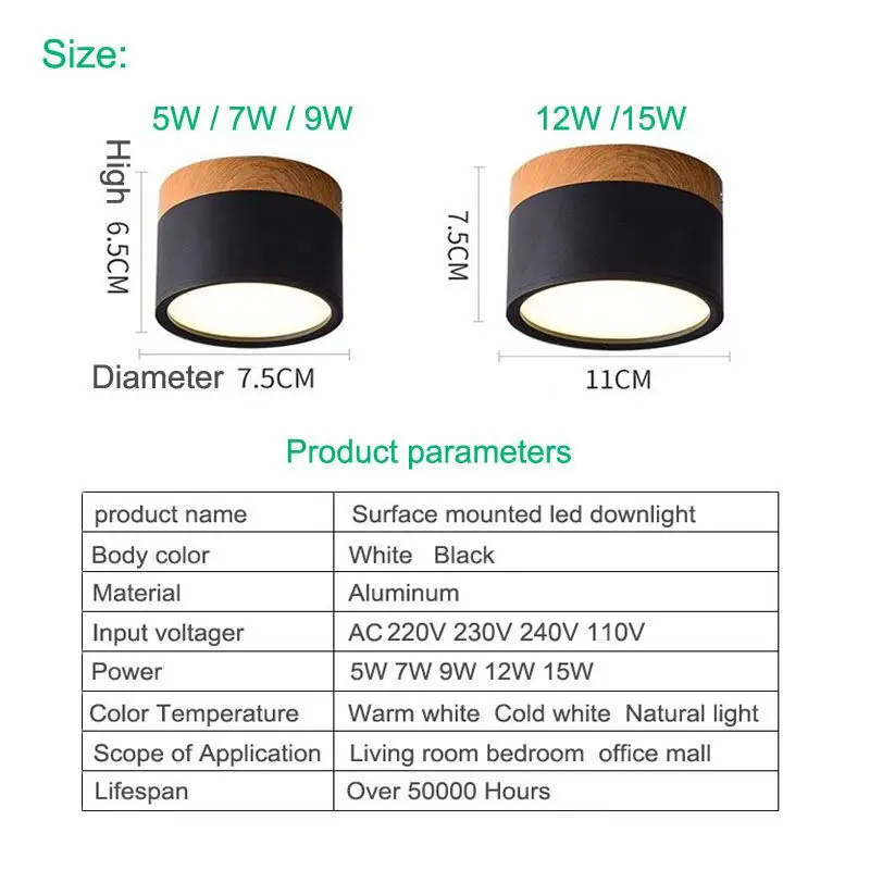 Светодиодный вниз светильник с регулируемой яркостью 5 Вт 7 Вт 9W12W15W светодиодный поверхностного монтажа светодиодный потолочный светильник Nordic Точечный светильник для внутреннего фойе, Гостиная