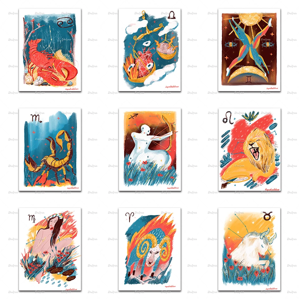 Gemini Овен Стрелец Знак Скорпион Рак Лев весы Водолей 12 знаков зодиака плакаты настенные художественные принты домашний декор холст