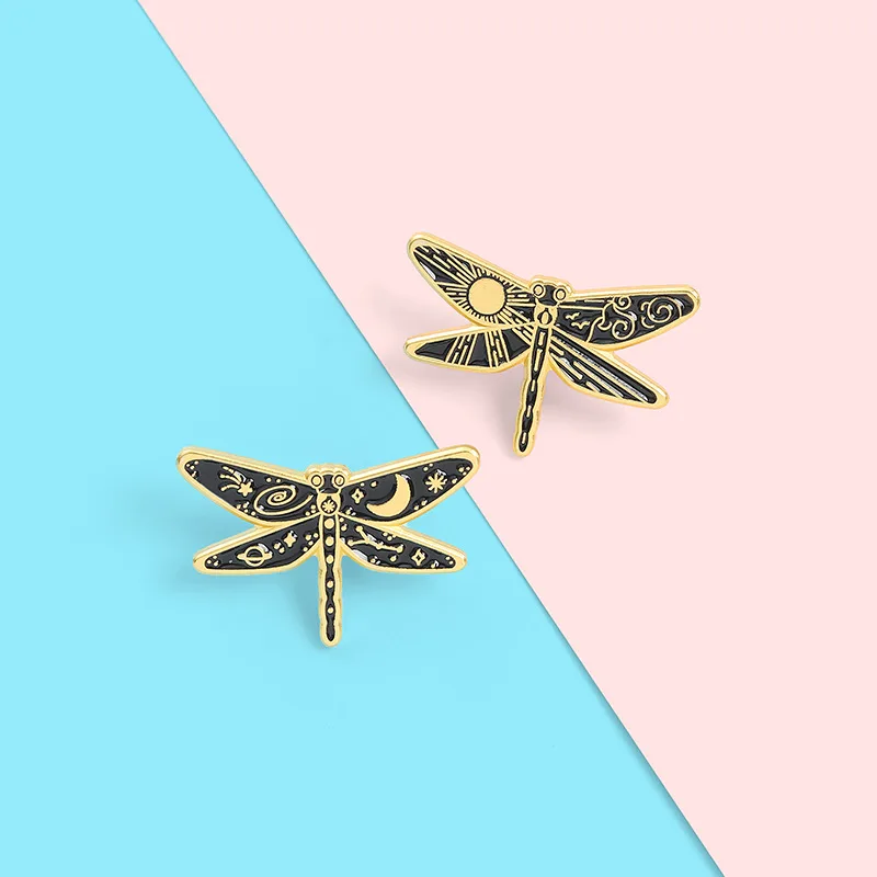 Солнце Луна Стрекоза эмалевые булавки на заказ день и ночь Броши с ...