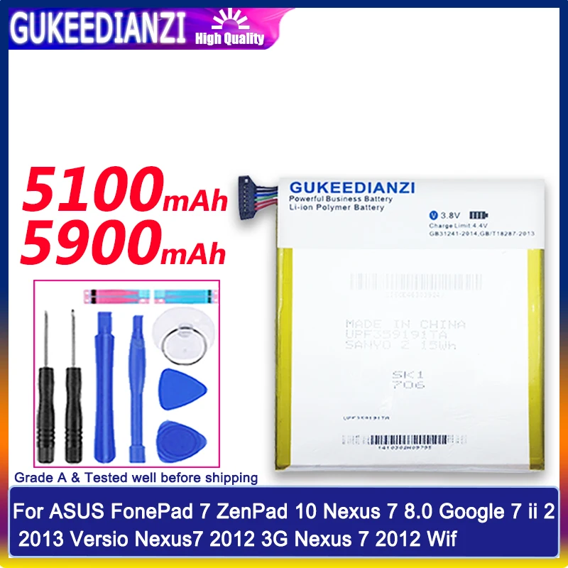 Аккумулятор GUKEEDIANZIC11P1502 для ASUS FonePad 7 ZenPad 10 Nexus 7 8,0 Google 7 ii 2 2013 Versio Nexus7 2012 3G Nexus 7 2012 Wif C11P1303АккумуляторНомер отслеживания