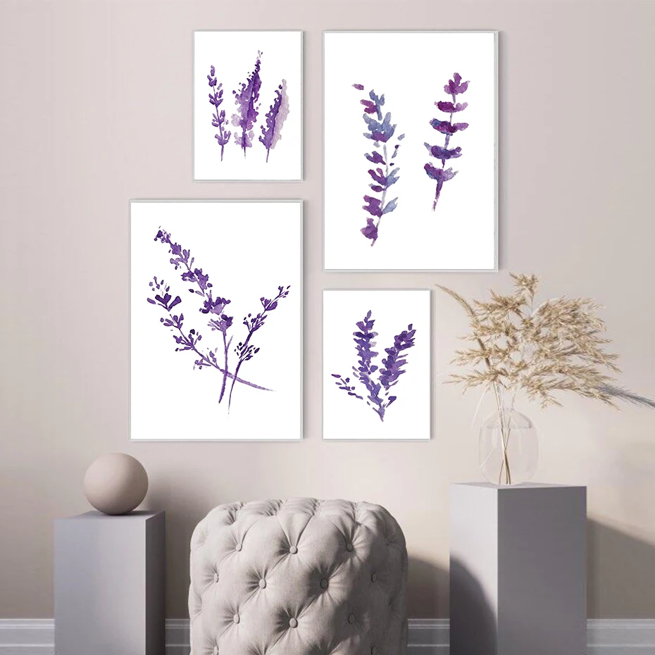 Акварель Прованс лаванды Плакат цветы настенный художественный принт Скандинавская Картина на холсте минималистский картина Гостиная украшения