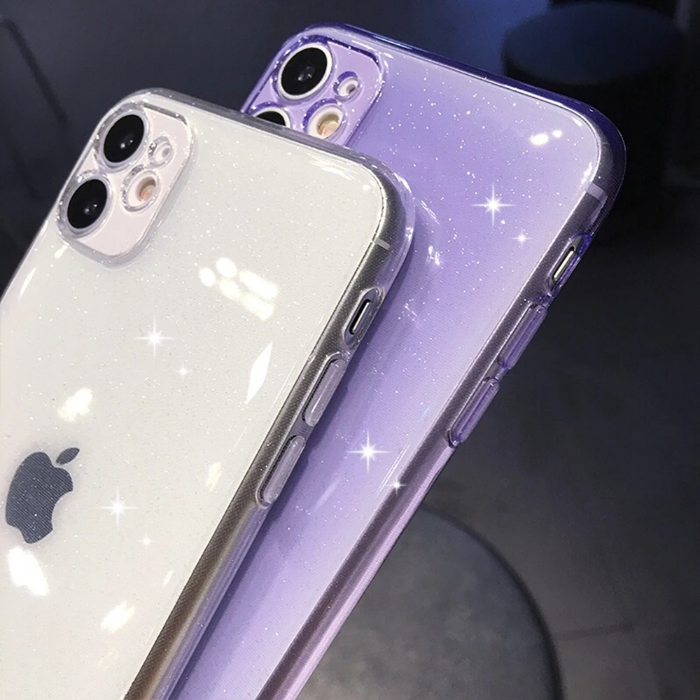 Защитный Блестящий Прозрачный чехол для камеры для iPhone 13, 12, 11 Pro, XS Max, SE, X, XR, 6, 6S, 7, 8 Plus, однотонный мягкий чехол для телефона из ТПУ