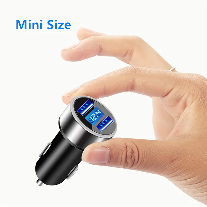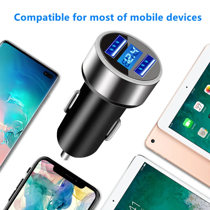 4,8a быстрое автомобильное зарядное устройство USB со светодиодным дисплеем для iPhone 12 11 Samsung Xiaomi, универсальное зарядное устройство с двумя USB-портами, адаптер для зарядки