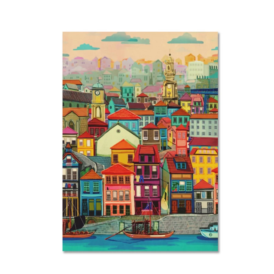 Алмазная живопись, красочные дома над водой, винтажный городской пейзаж, вышивка крестиком, ручная работа, кристалл бриллиантовой вышивки