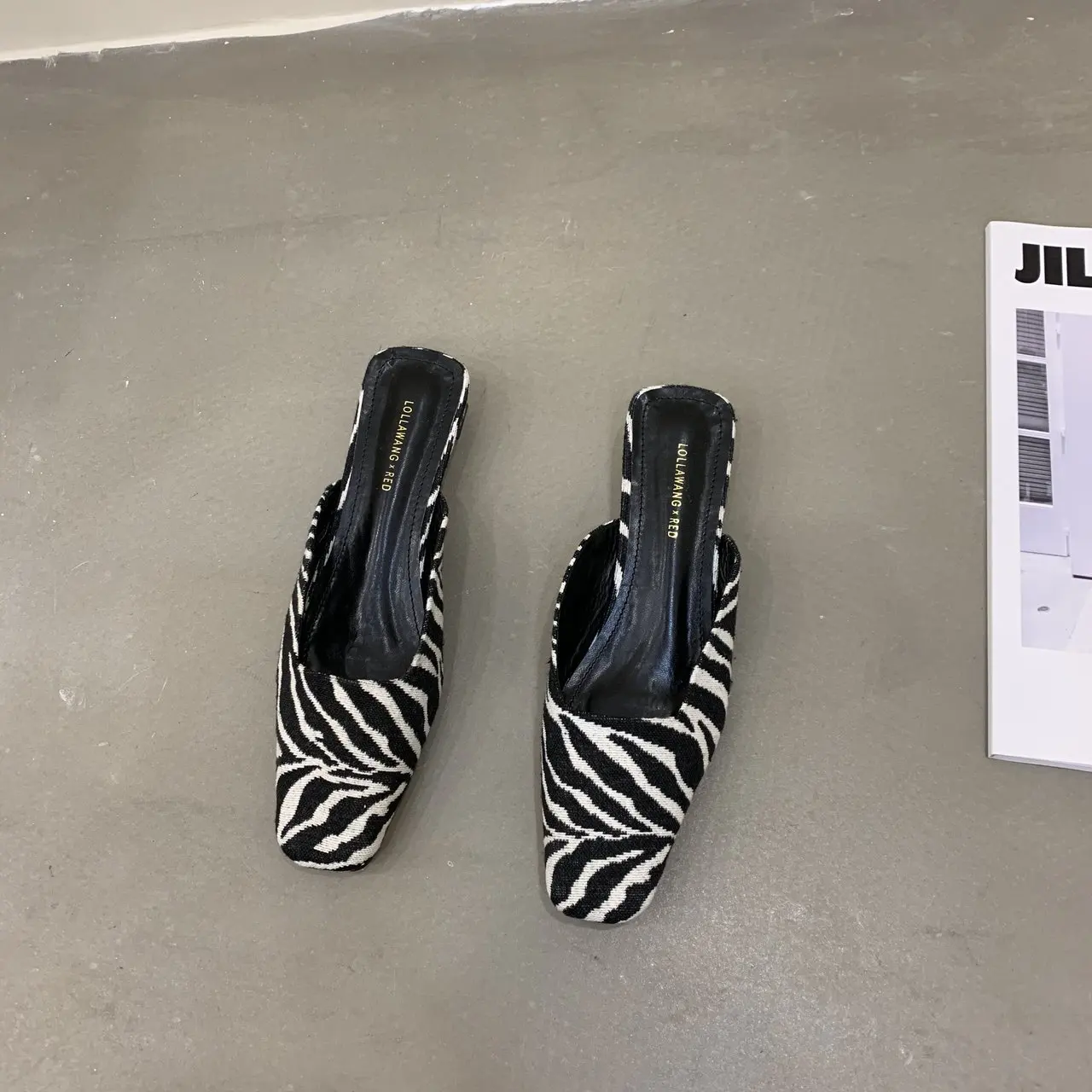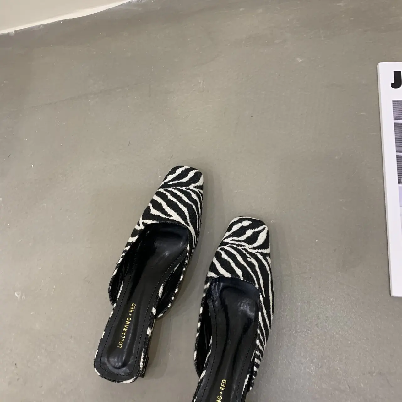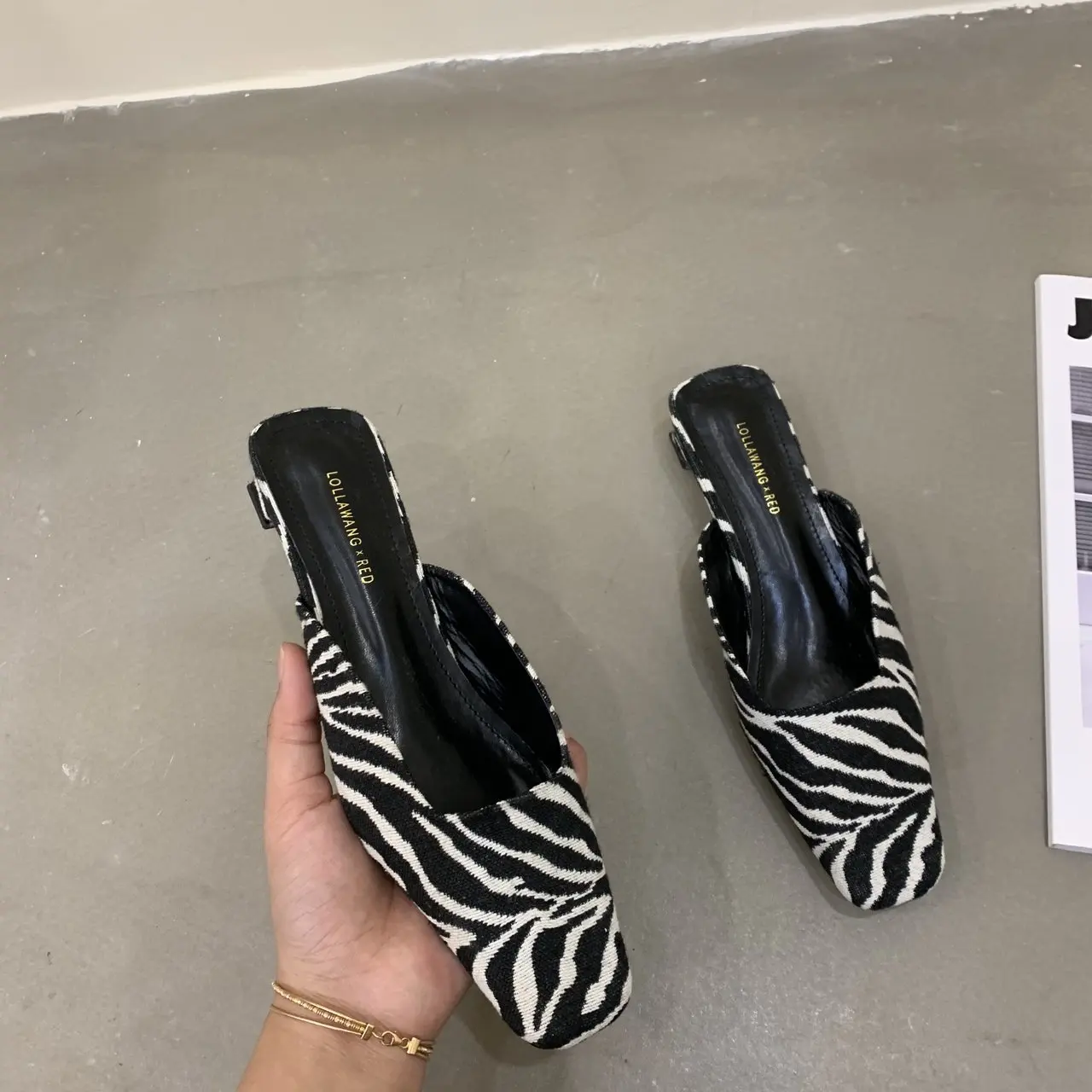 Сланцы женские на низком каблуке, брендовые шлепанцы, квадратный носок, без застежки, узор Зебразмея, весна, BC717