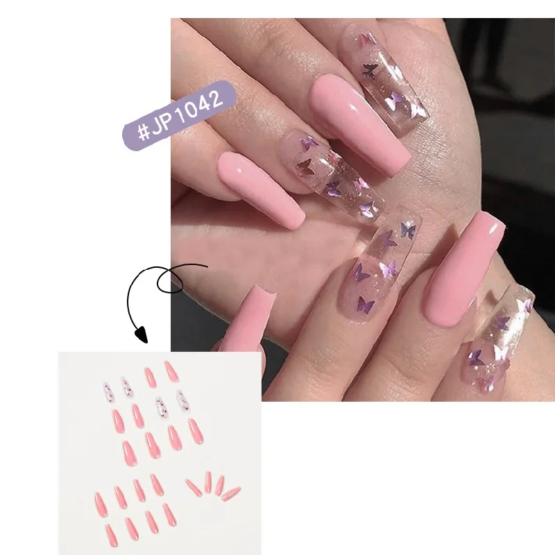 GAM-BELLE розовый лазер бабочка поддельные ногти накладные с клеем гроб искусственные ногти советы с дизайном нажмите на инструмент для дизайна ногтейОсобенности:12 различных размеров для разных пальцев, 2 наконечника для каждого размера.Для профессионального наращивания ногтей и французского маникюра.Легко использовать с клеем для ногтей или желе двухсторонние клейкие ленты.Легко обрезать и прикрепить их к любой длине и форме, которые вам нравятся.Розовые лазерные бабочки накладные ногтиМатериал: АБС-пластикСтиль: накладные ногти с полным покрытиемПакет включает в себя: 24 шт./компл. накладные ногти + 1 мл клей для ногтейСоветы по использованию:1. Вырезайте, напиливайте и формируйте собственные ногти.2. Очистите свой собственный ноготь.3. Выберите подходящий кончик, сравняя ширину вашего естественного ногтя.4. Приклейте наконечник на ногтевую пластину.5. Выровняйте и формируйте кончик.6. Начните применять УФ-гель или лак для ногтей.