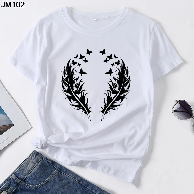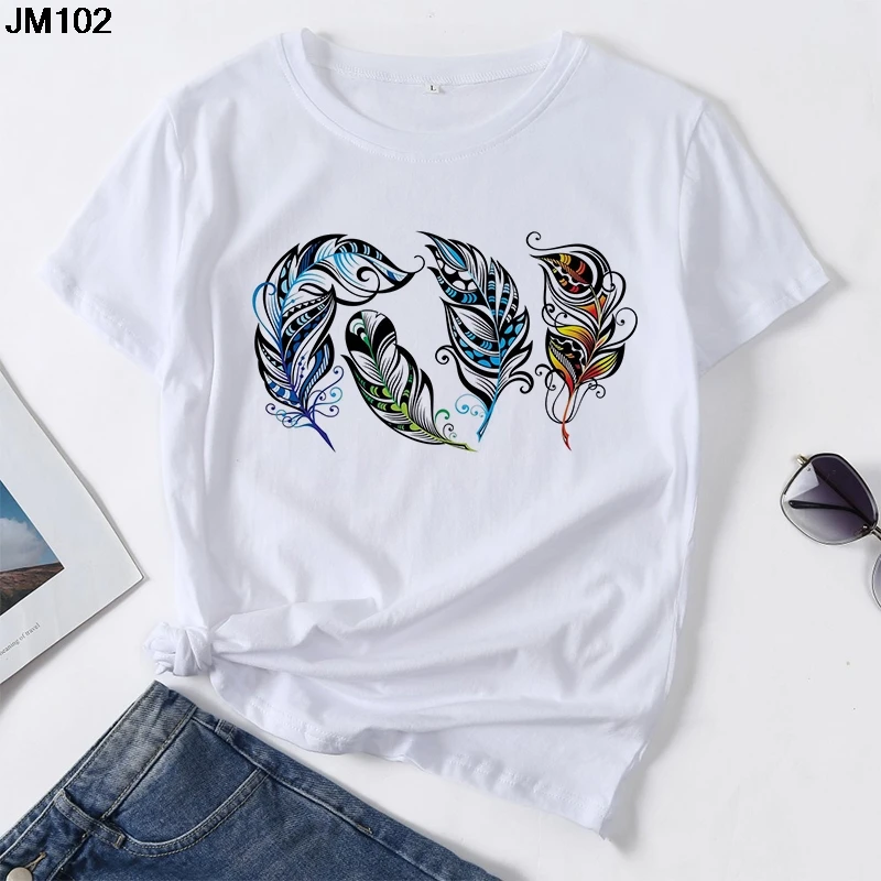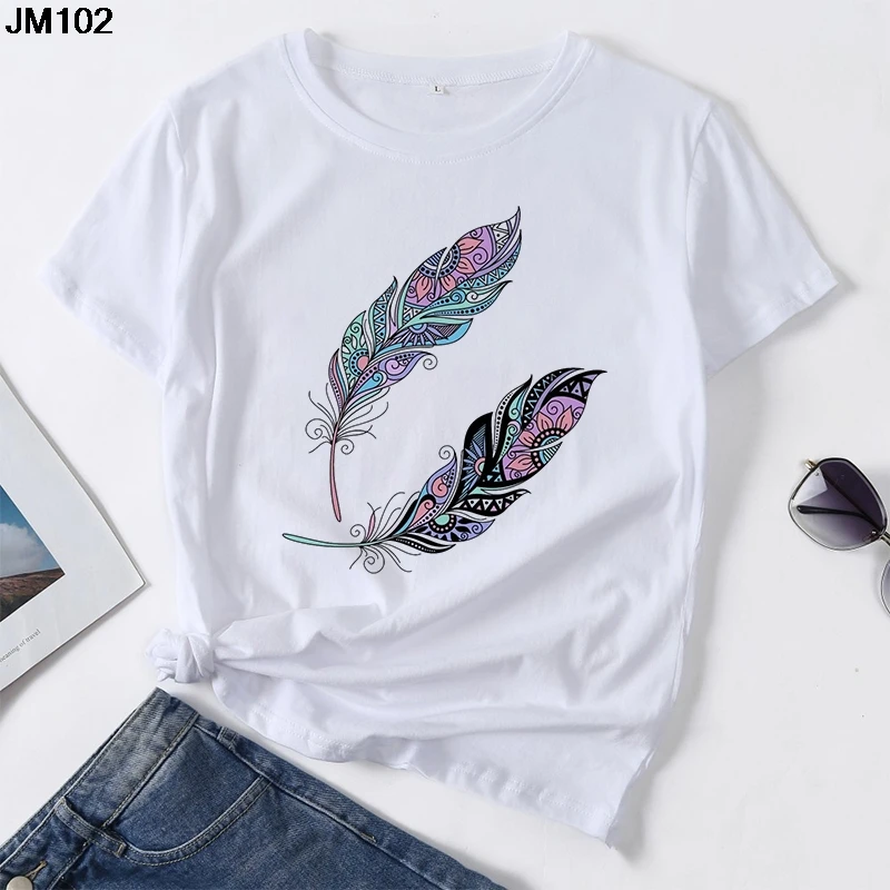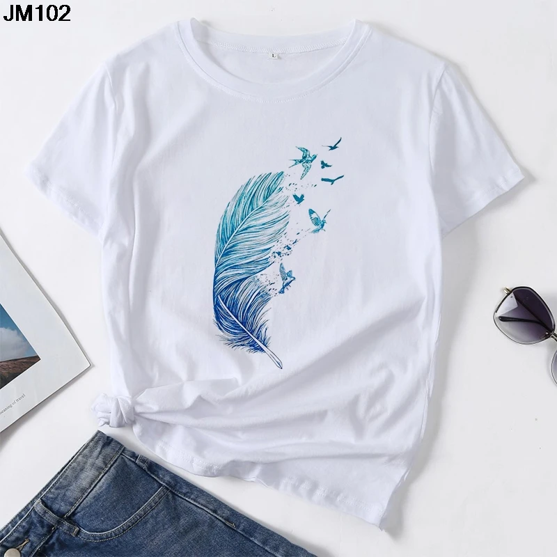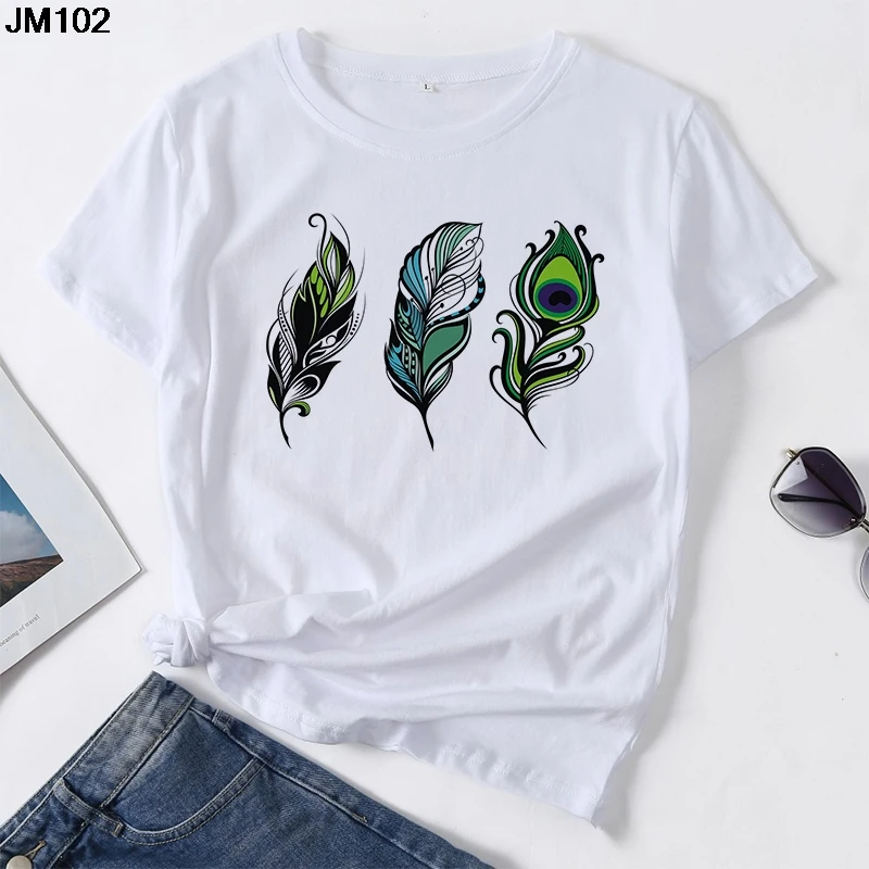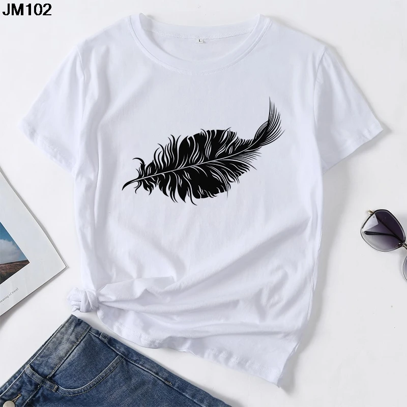 Футболка женская летняя с принтом птиц и перьев, повседневный топ с...