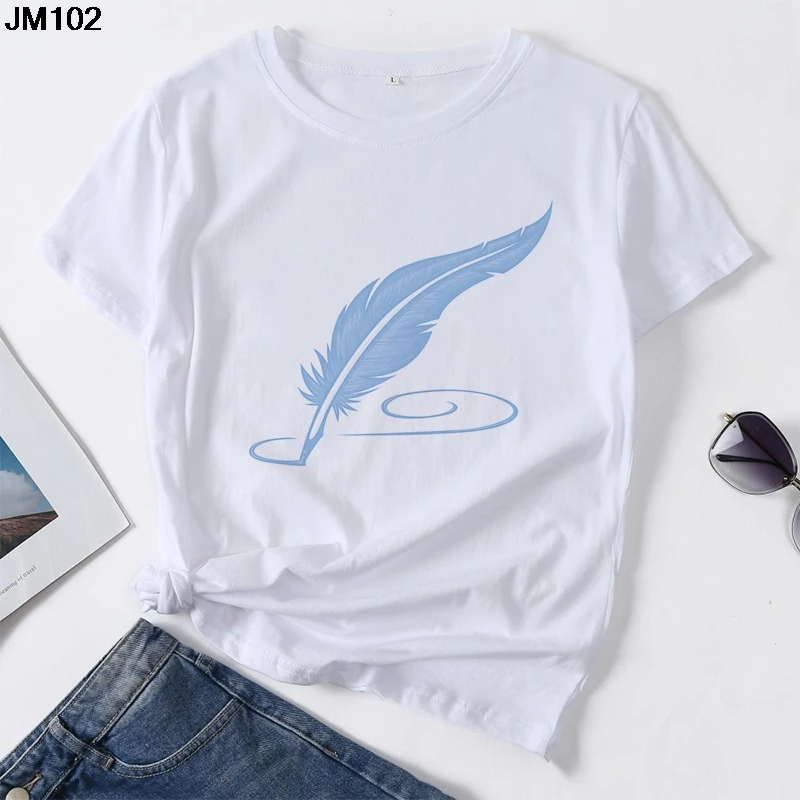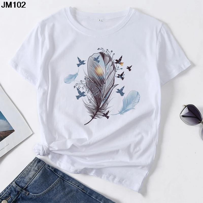 Футболка женская летняя, Повседневная рубашка с акварельным принтом птиц и перьев, в стиле 90-х, футболка