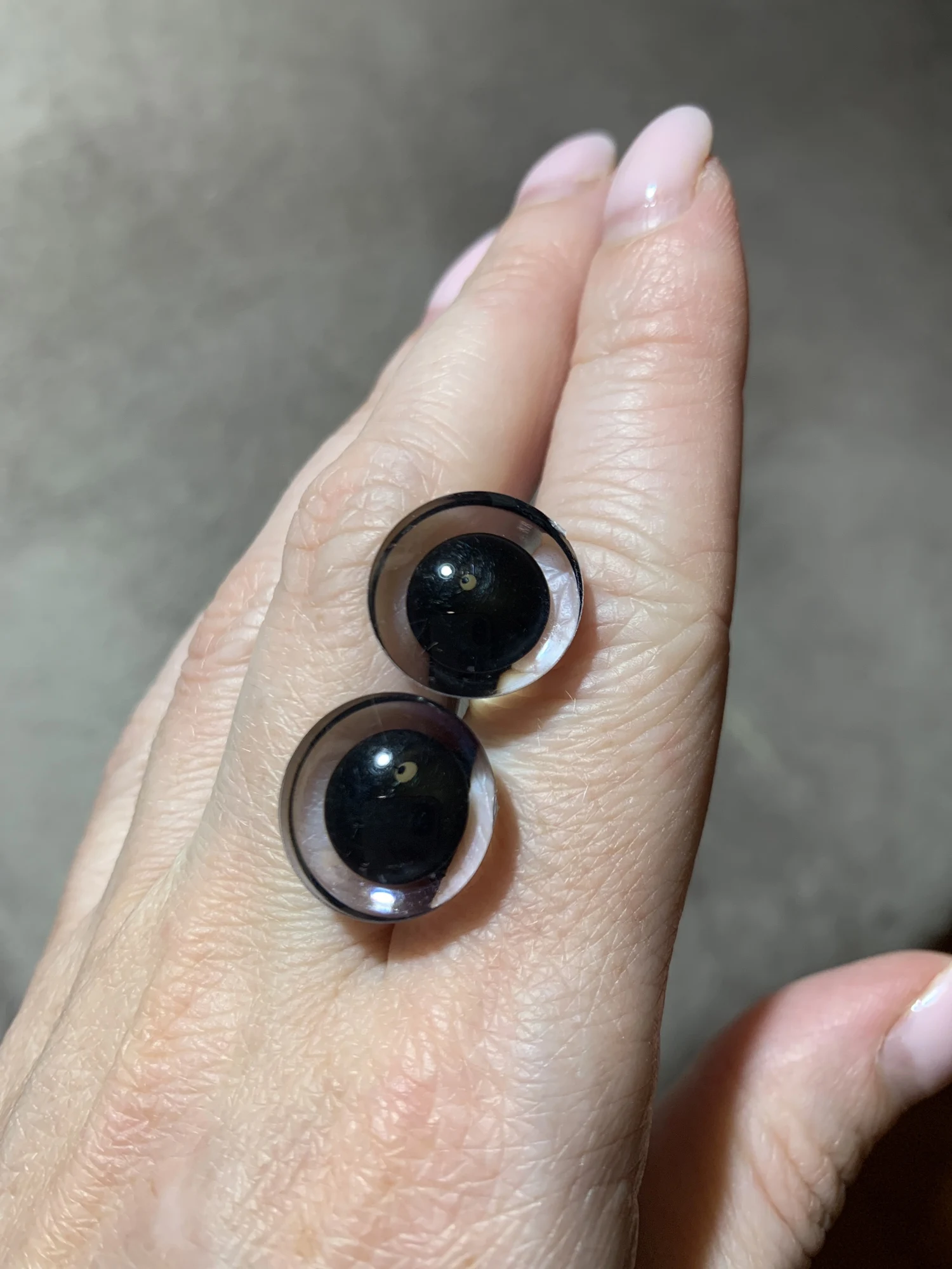 Глаза хороши, но шайбы из жесткого пластика, и их очень трудно прикрепить даже с помощью приспособления для глаз.