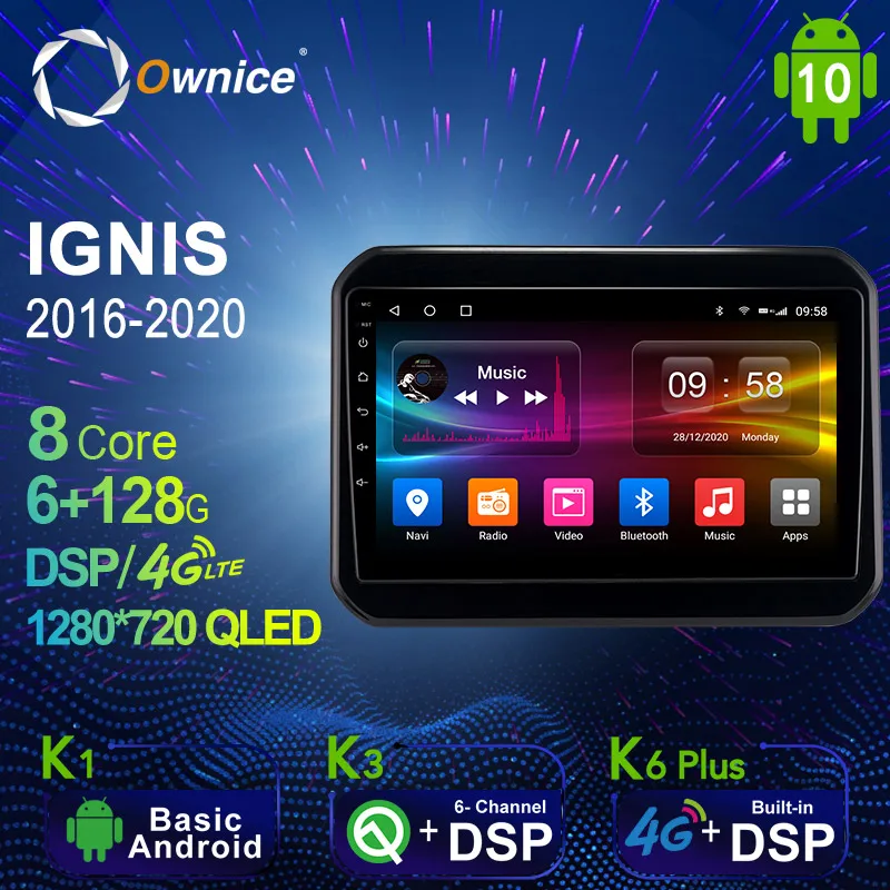 Автомагнитола Ownice Android 10,0 6G + 128G для SUZUKI IGNIS 2016 - 2020 автоаудио GPS 4G LTE, головное устройство 1280*720