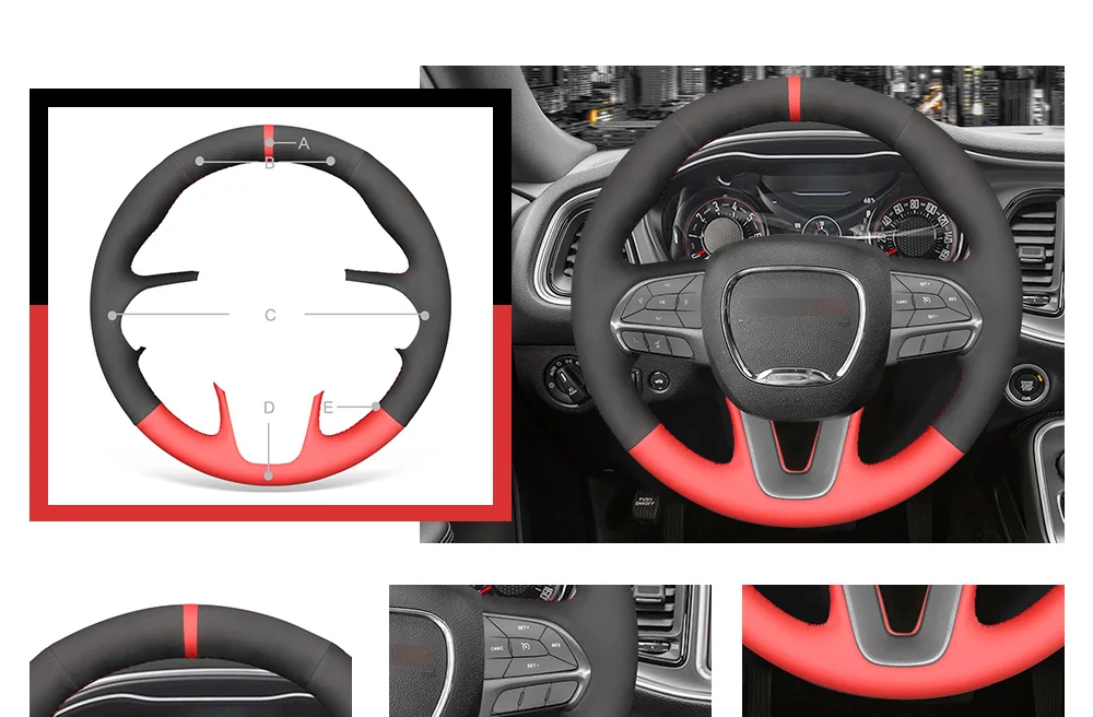 Оплетка на руль для Dodge Challenger, черная замшевая, для зарядного устройства, Dodge Durango, 2015, 2016, 2017, 2018, 2019, 2020, 2021