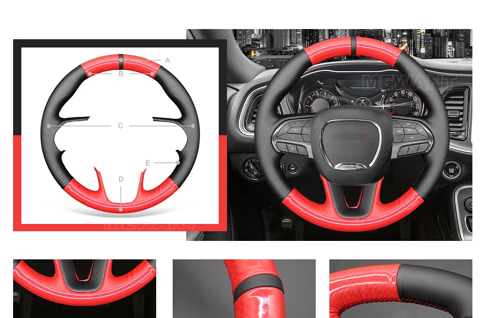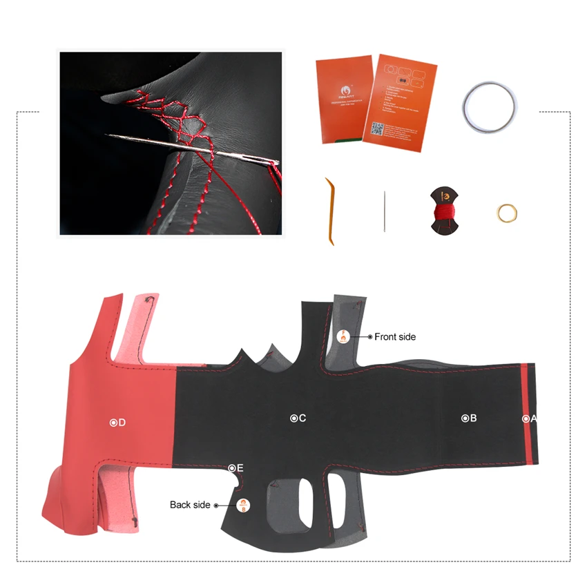 A: черный маркерB + D: красное глянцевое полиуретановое углеродное волокноC: черная искусственная кожаE: Красная Нить