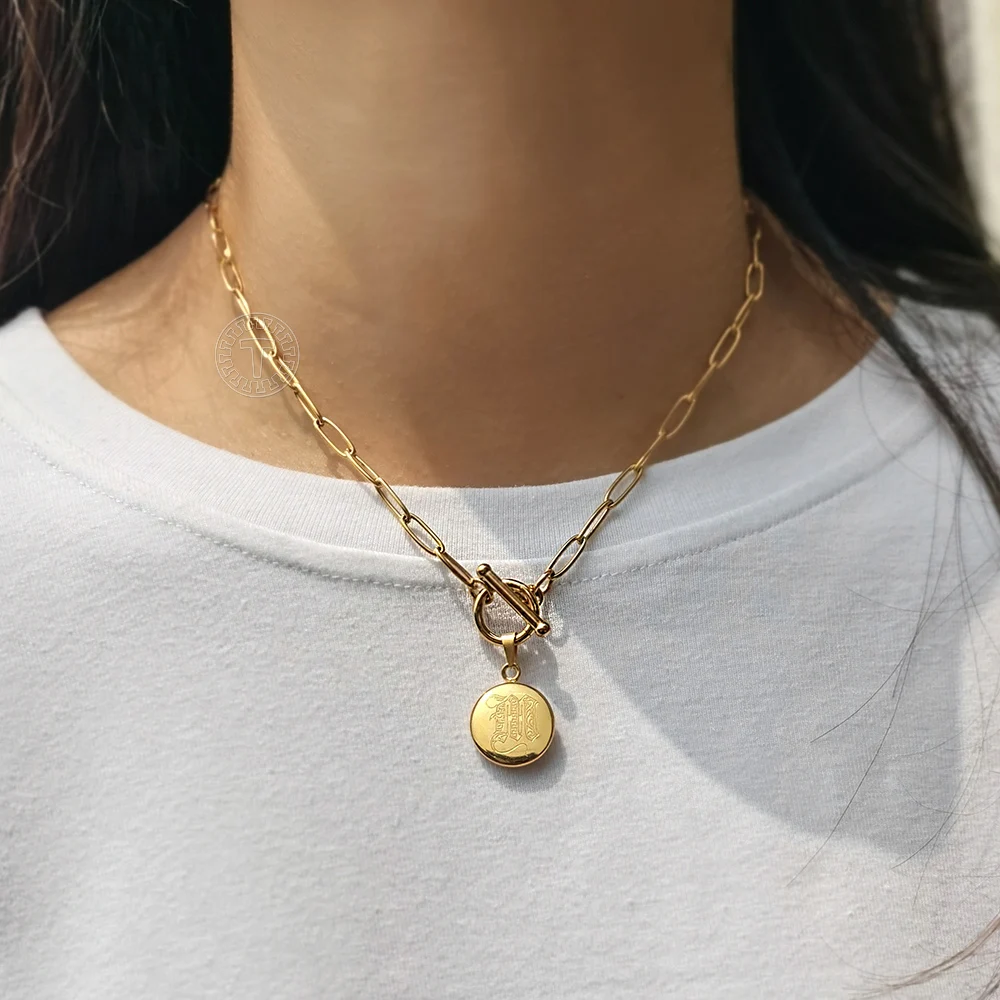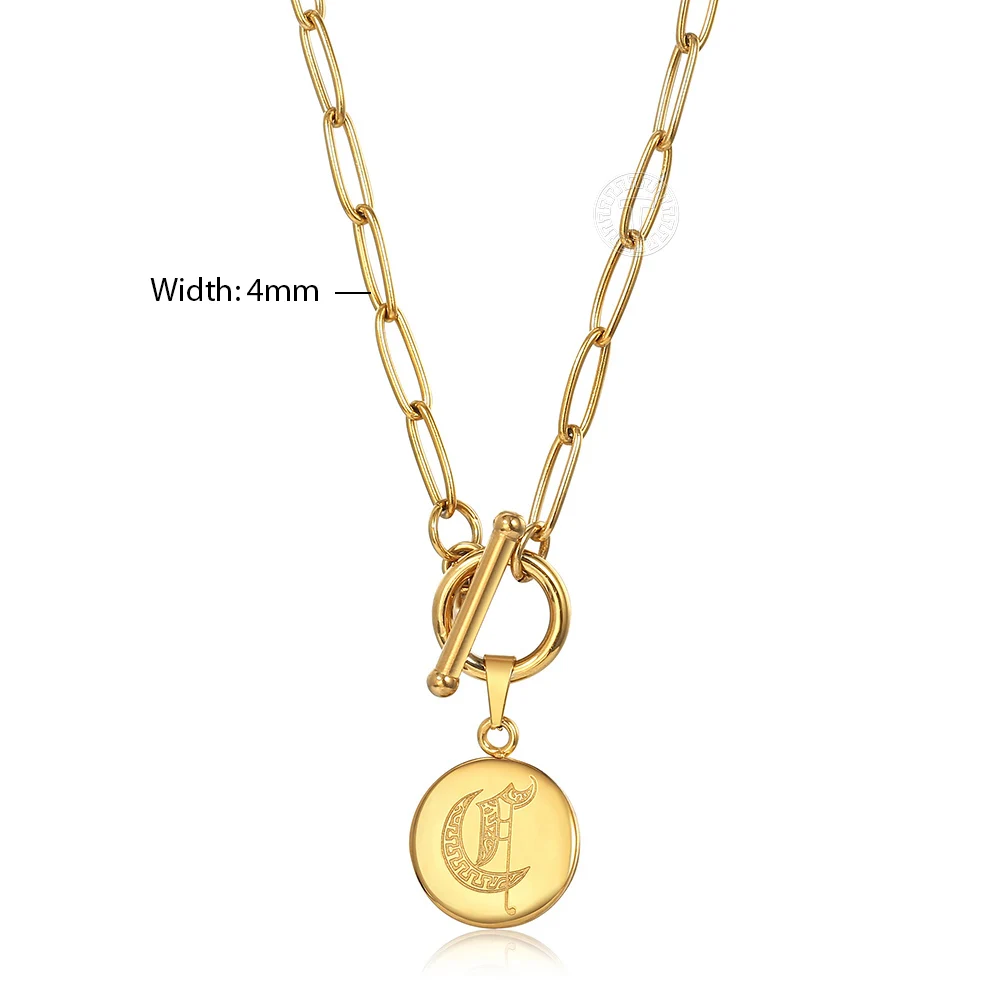 Панк монограмма кулон с надписью диск монета Шарм ожерелье Золото Нержавеющая сталь Скрепка звено цепи для женщин мужчин подарок DN257