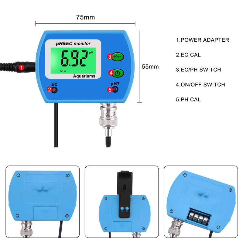 Профессиональный PH-метр 2 в 1 EC, цифровой монитор качества воды, многопараметрический онлайн-кислотометр с европейской вилкой для аквариума, инструмент для тестирования